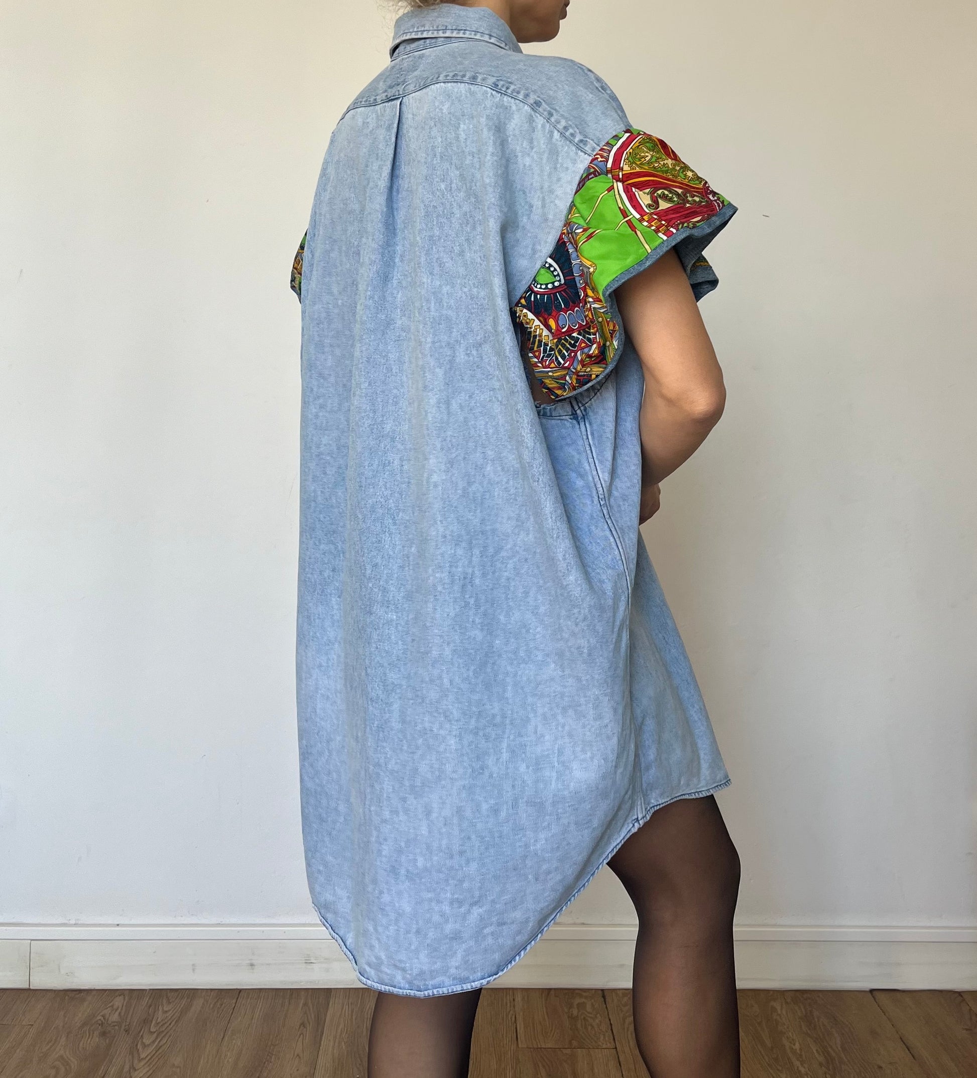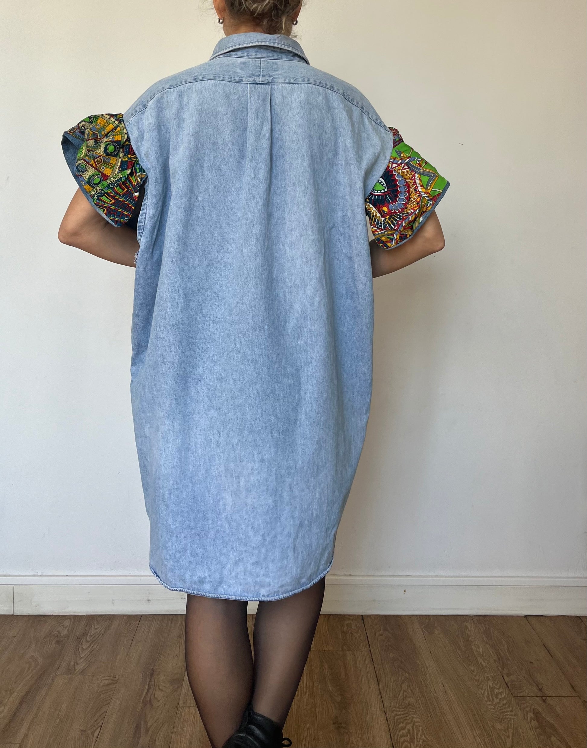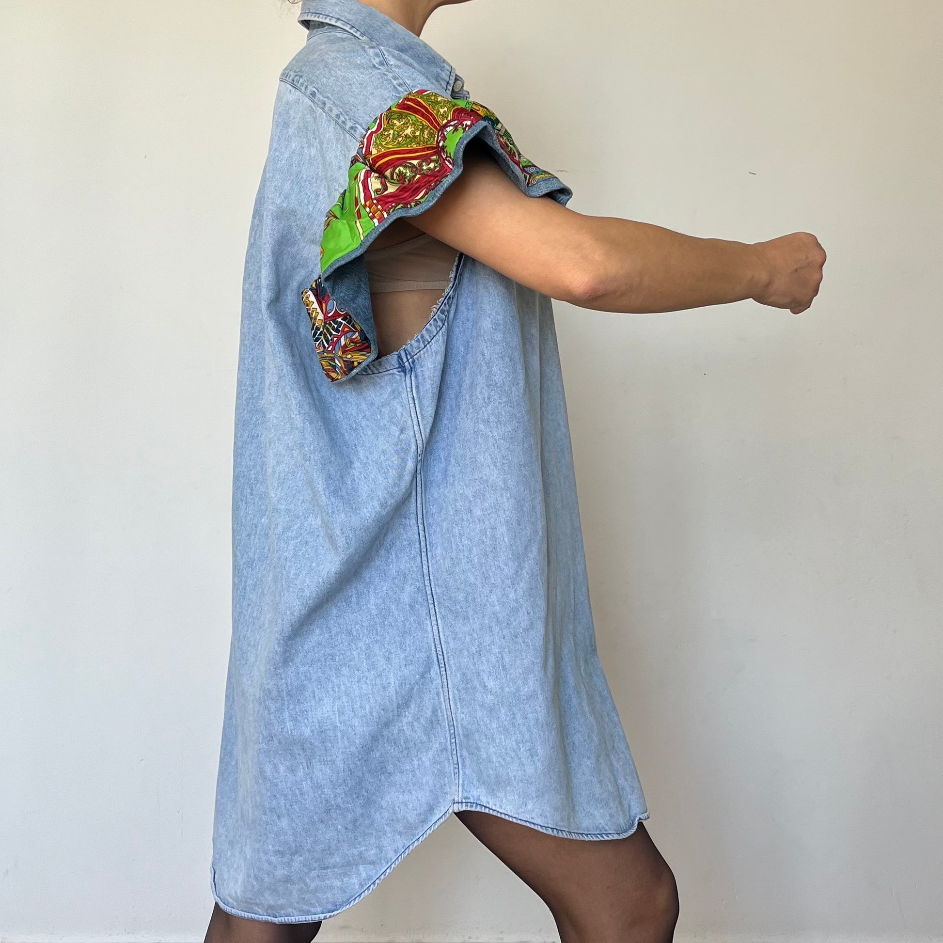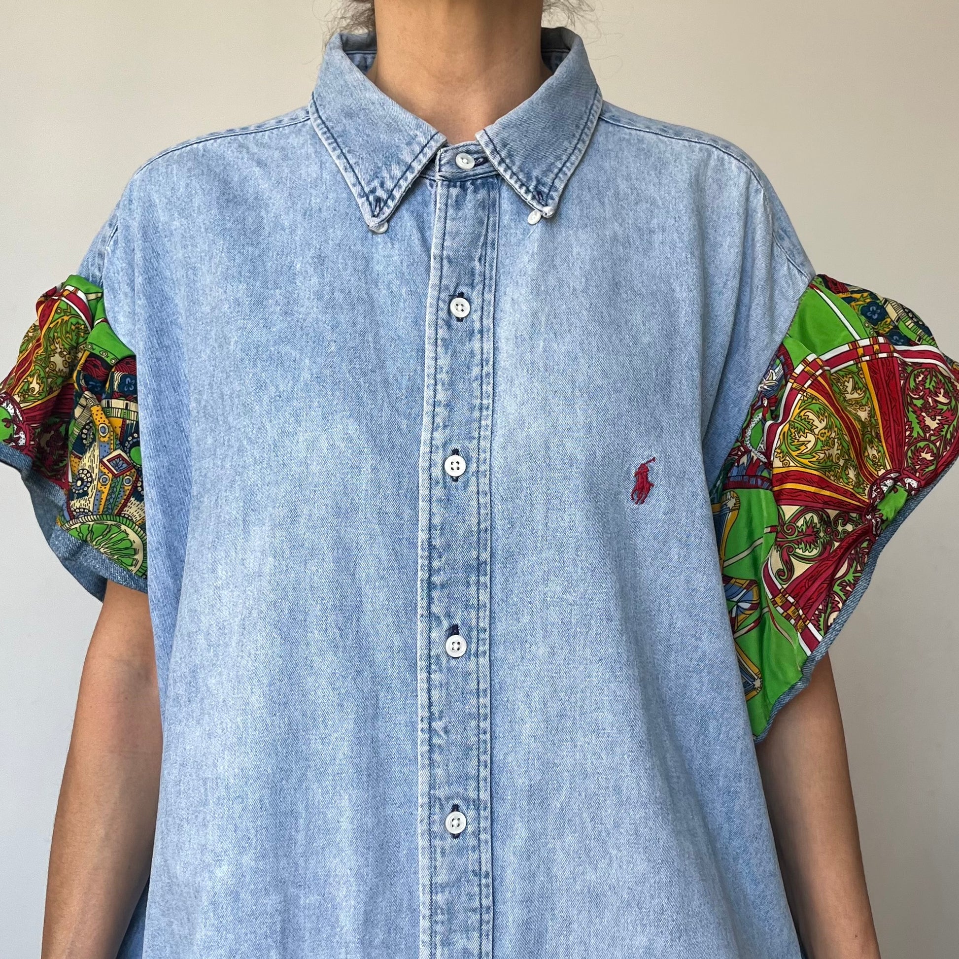 This vintage Ralph Lauren denim shirt dress features a unique design
