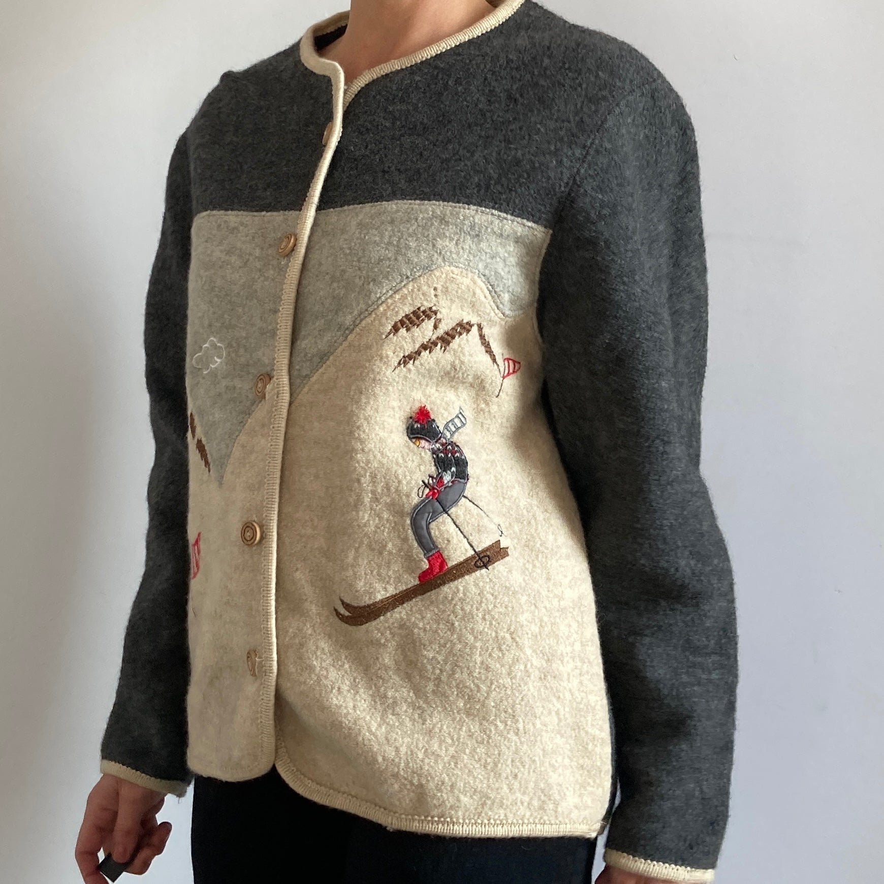 This jacket is made from pure new wool, it's quite light and not too warm, which makes it great for in between seasons.