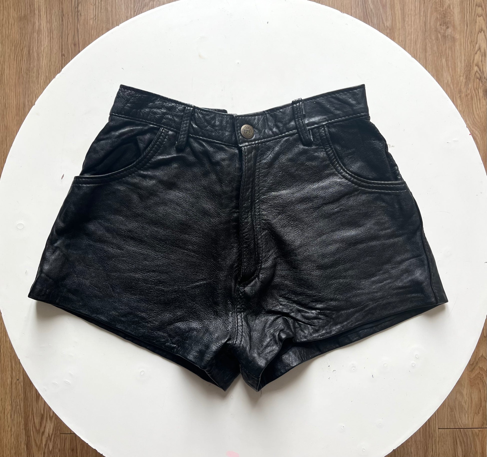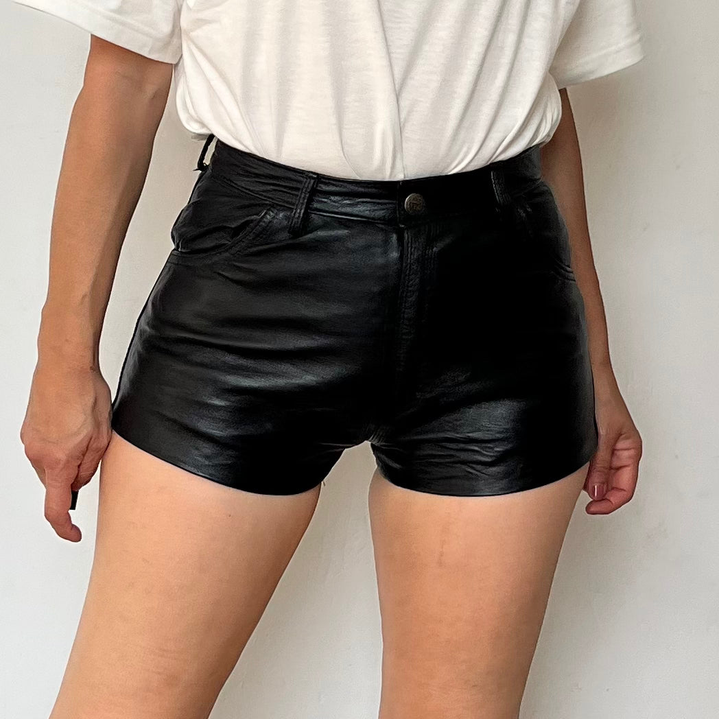 Vintage black leather shorts from the 90s