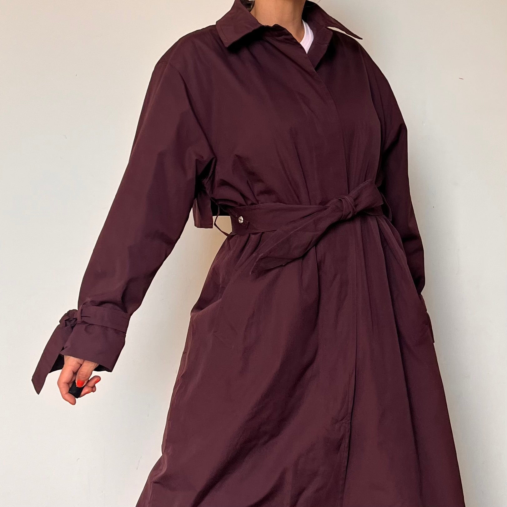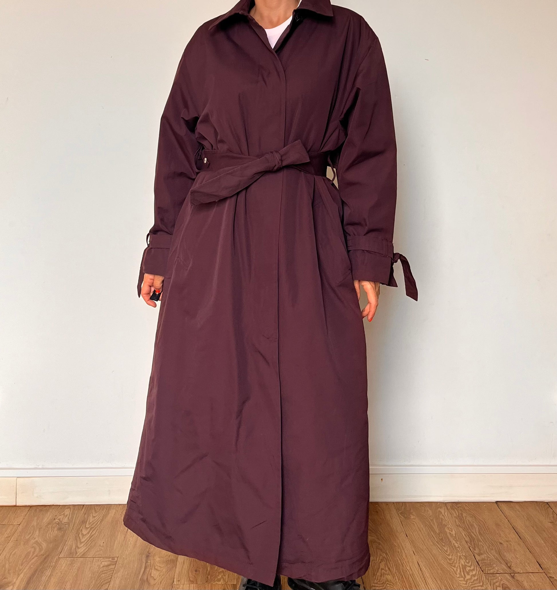 Elevate your wardrobe with this high-quality burgundy trench coat.