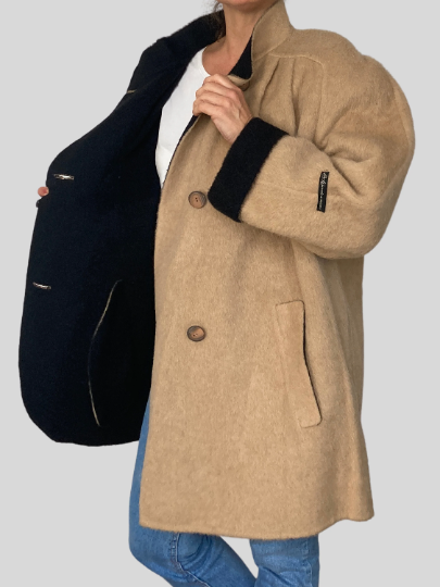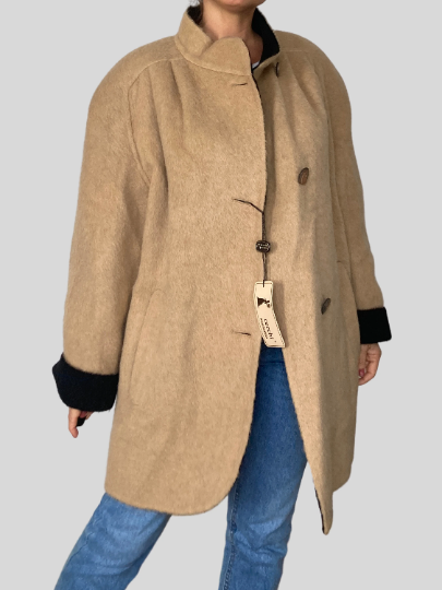 Old Stock with label Luxury coat made of Alpaca & Virgin Wool oversize style.