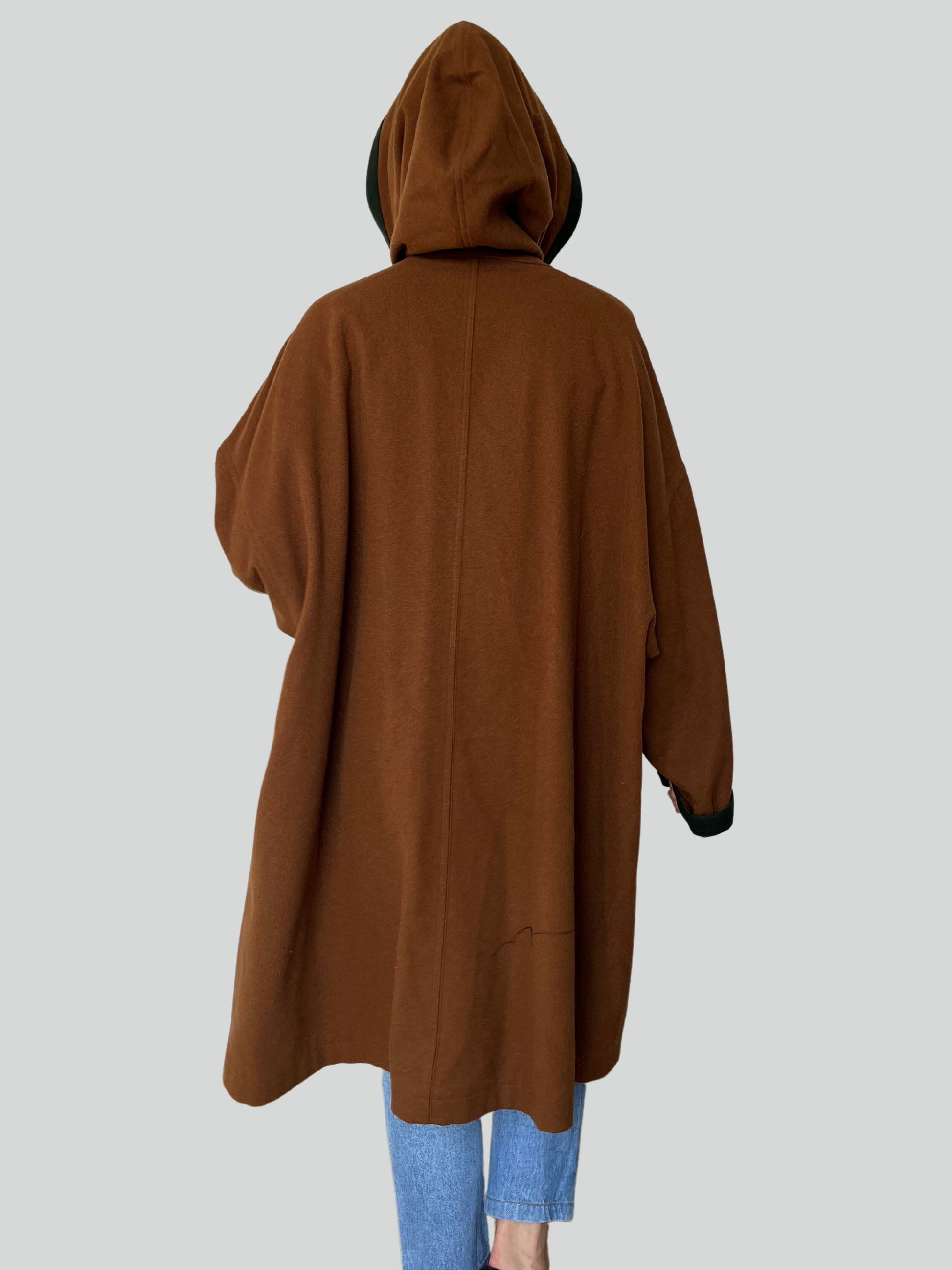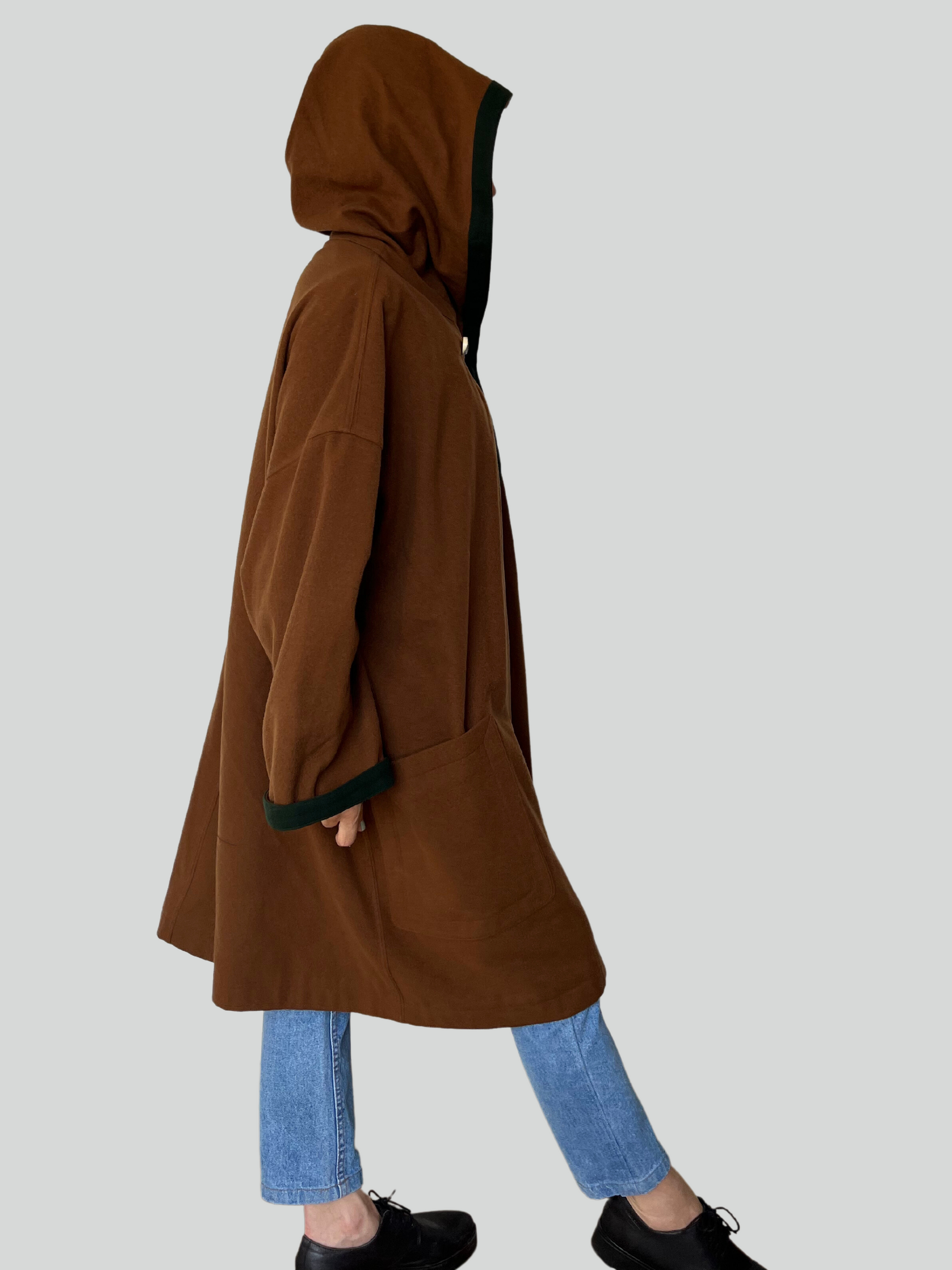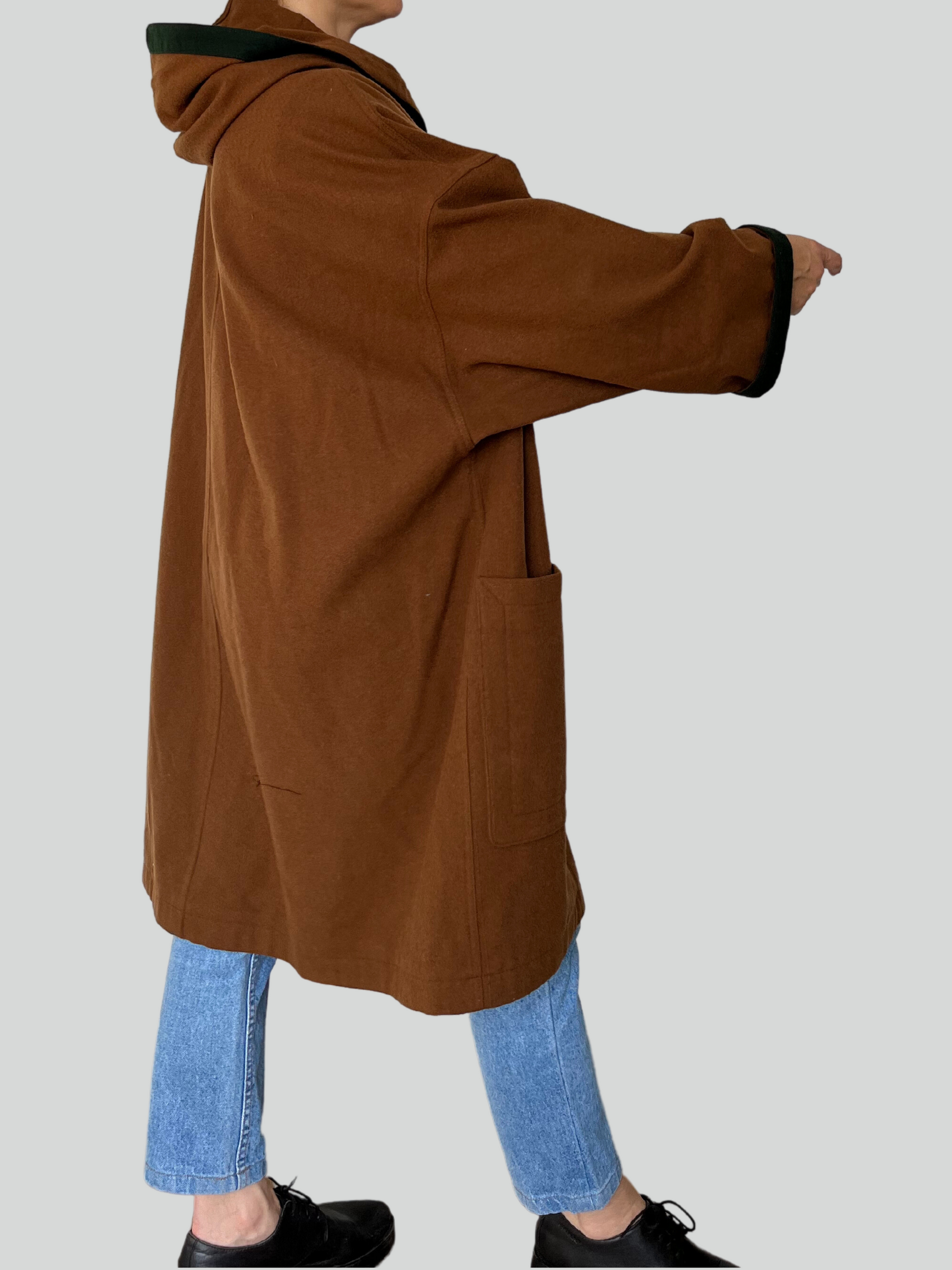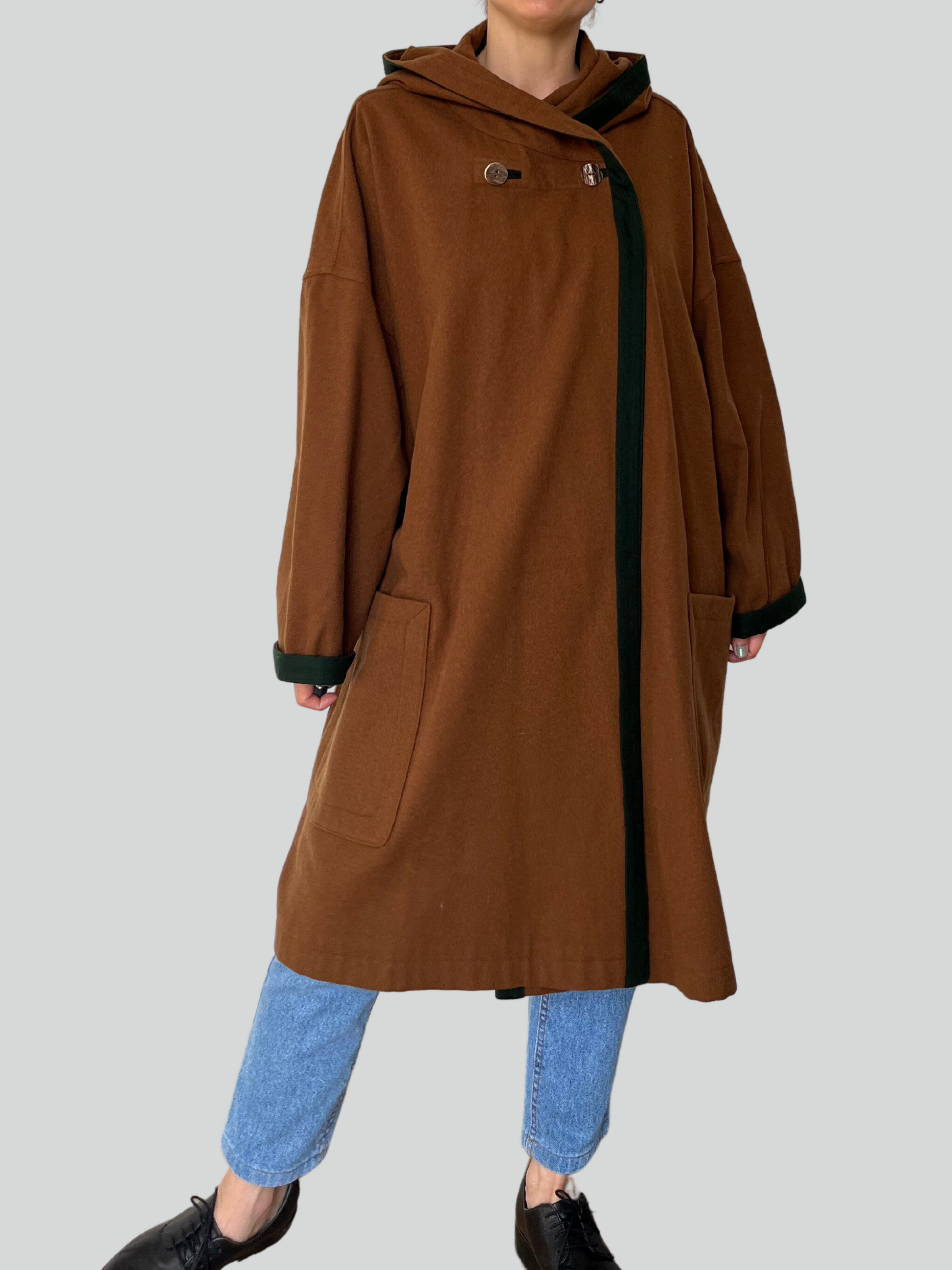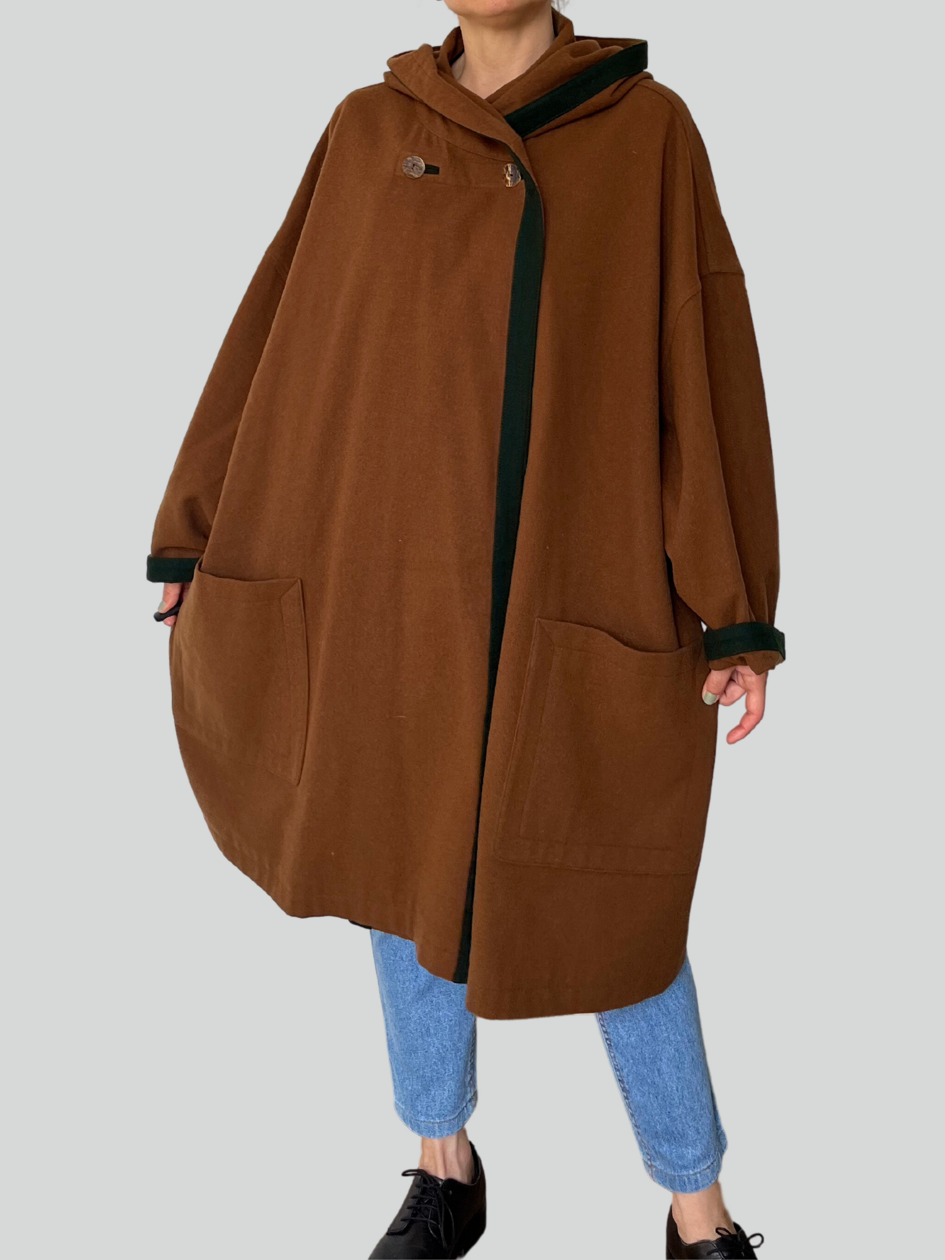 Beautiful brown wool Austrian cape style coat with green details.