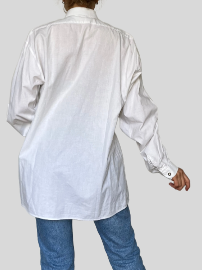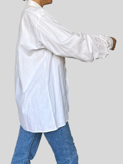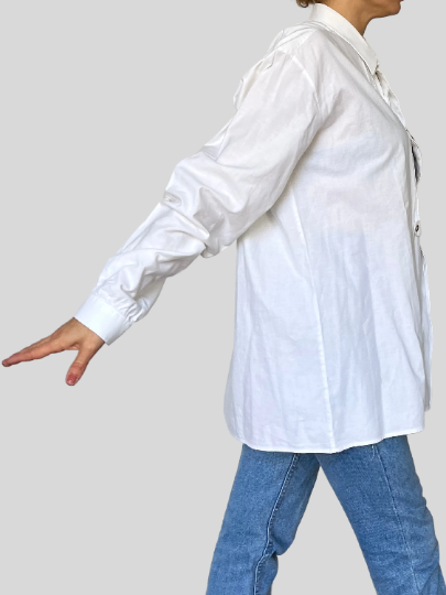 The blouse has a beautiful very delicate embroidery on the jabot and long sleeves,