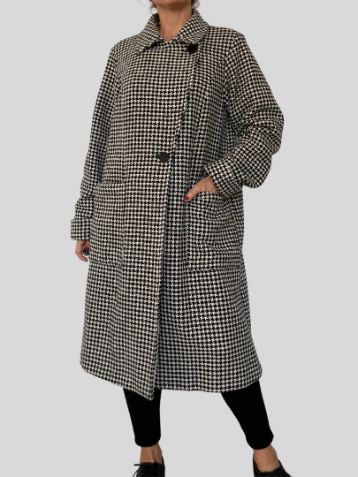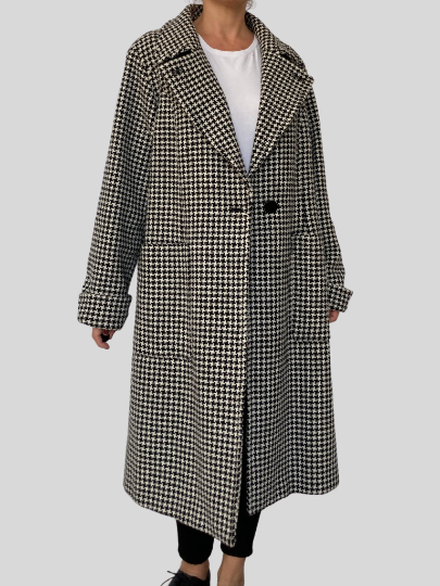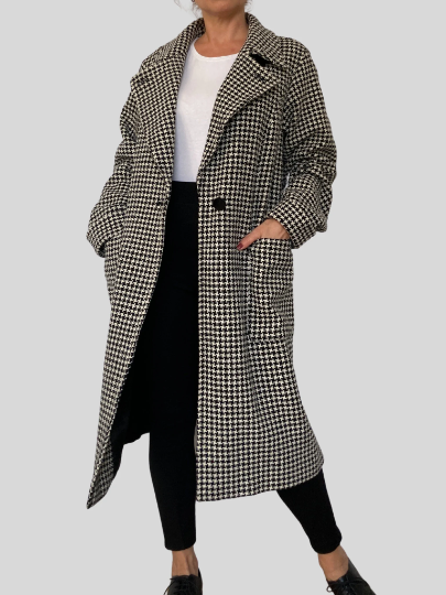The cut is classic & beautiful, you can wear it buttoned up to the neck or with a single button to show off the lapel.