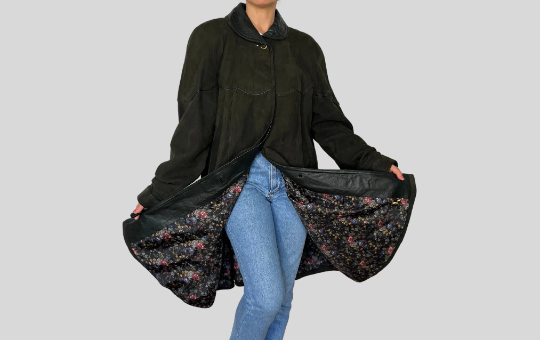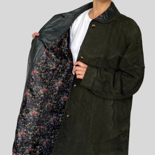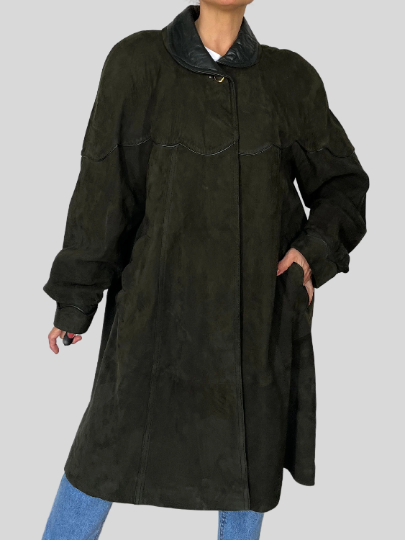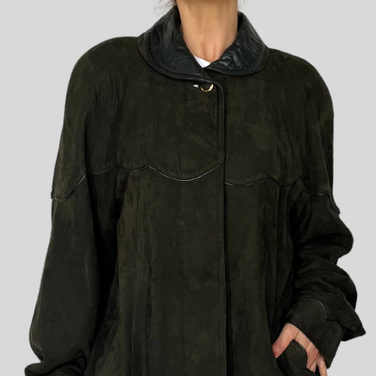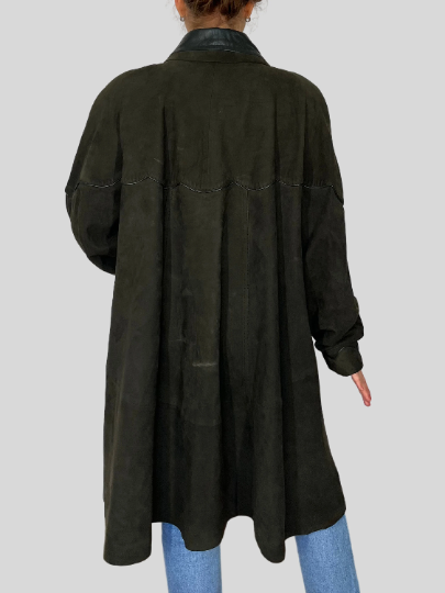 Beautiful Lightweight oversized coat made of soft suede with leather details