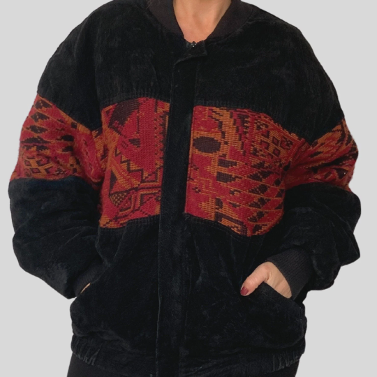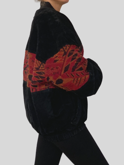 It is very wide in the body and sleeves, which makes it very comfortable and is lined in black matelase.