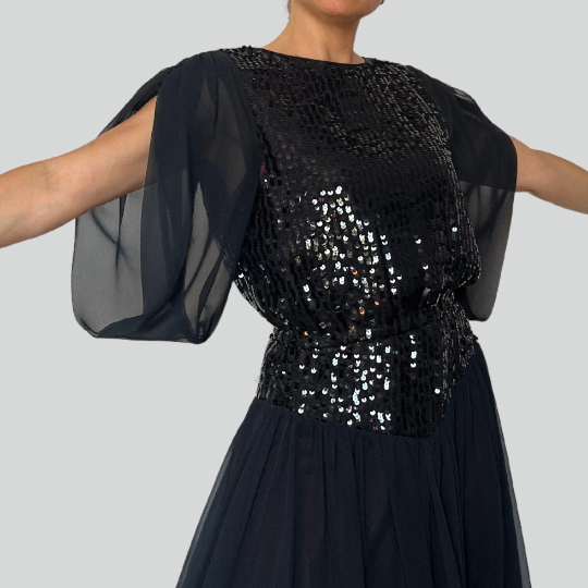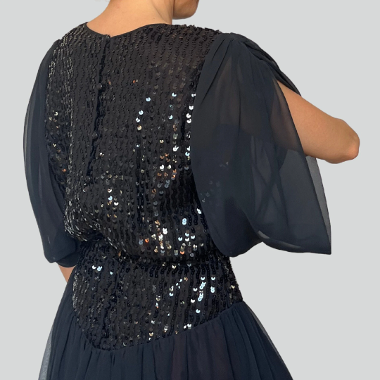 The neckline has a pleat that combines perfectly with the beautiful puffed sleeves.