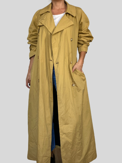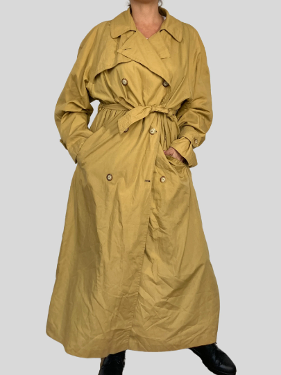 The cut is the classic of trench coats but it is long to the feet, which gives it a unique elegance.