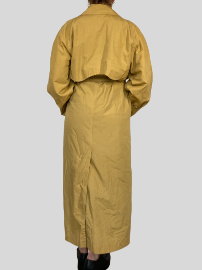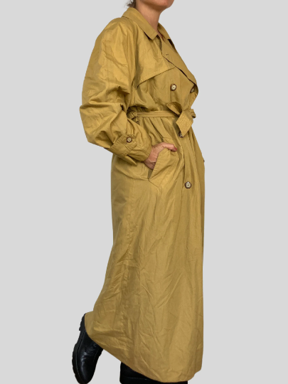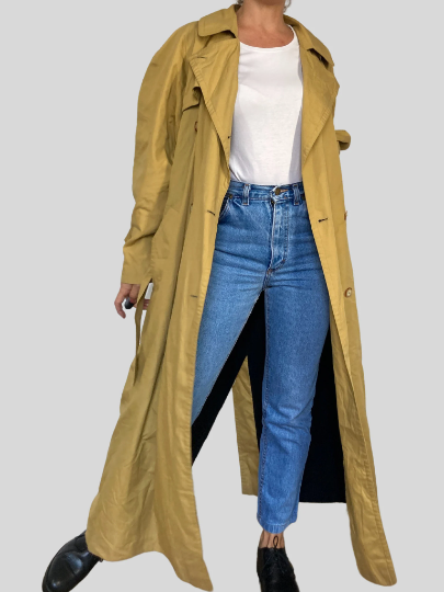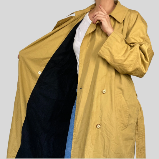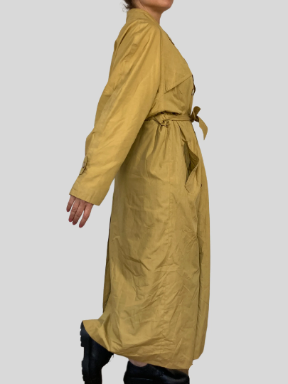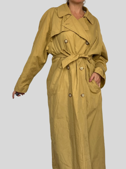 This beautiful mustard colored trench coat is an overcoat that you are going to want to have!