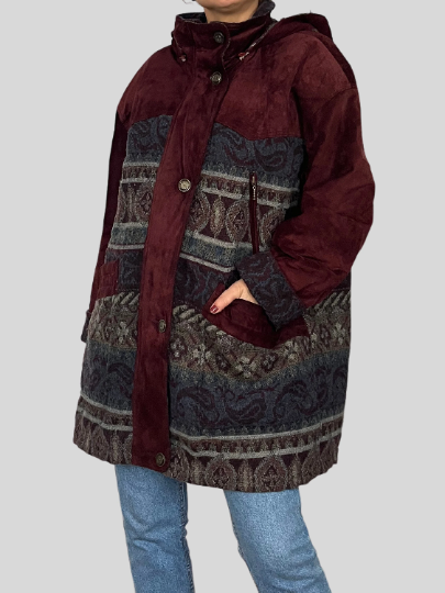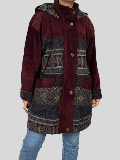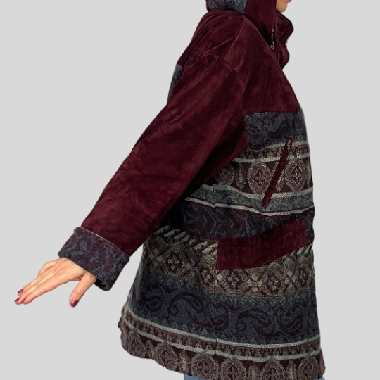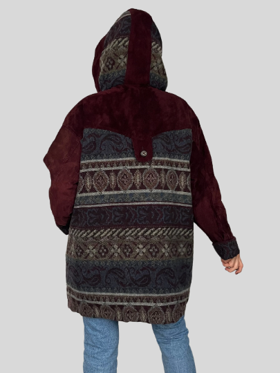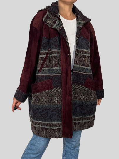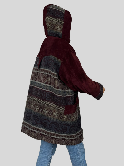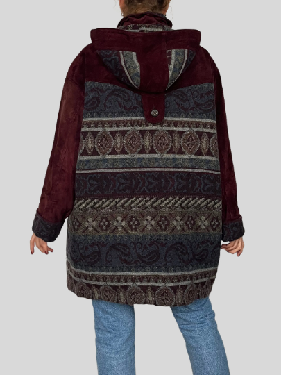 Suede Ethnic Coat with hood