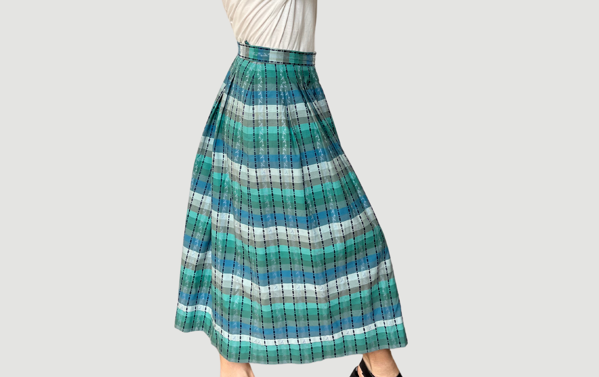 Beautiful checkered skirt in blue, turquoise and green colours.