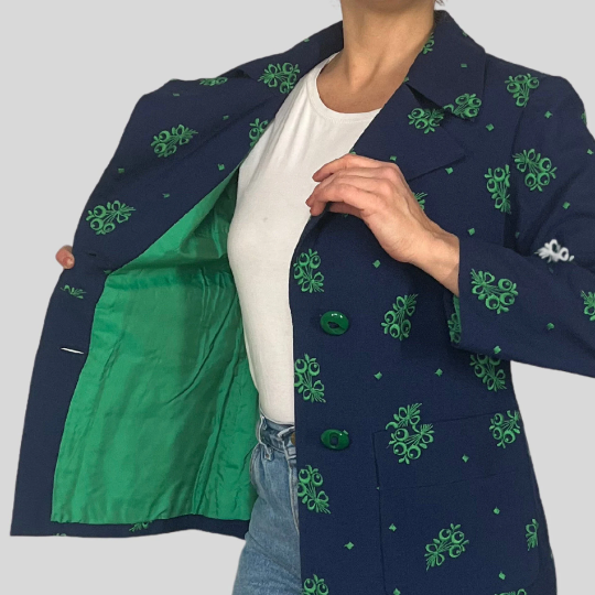 Unique Blazer from the seventies printed in blue and green,