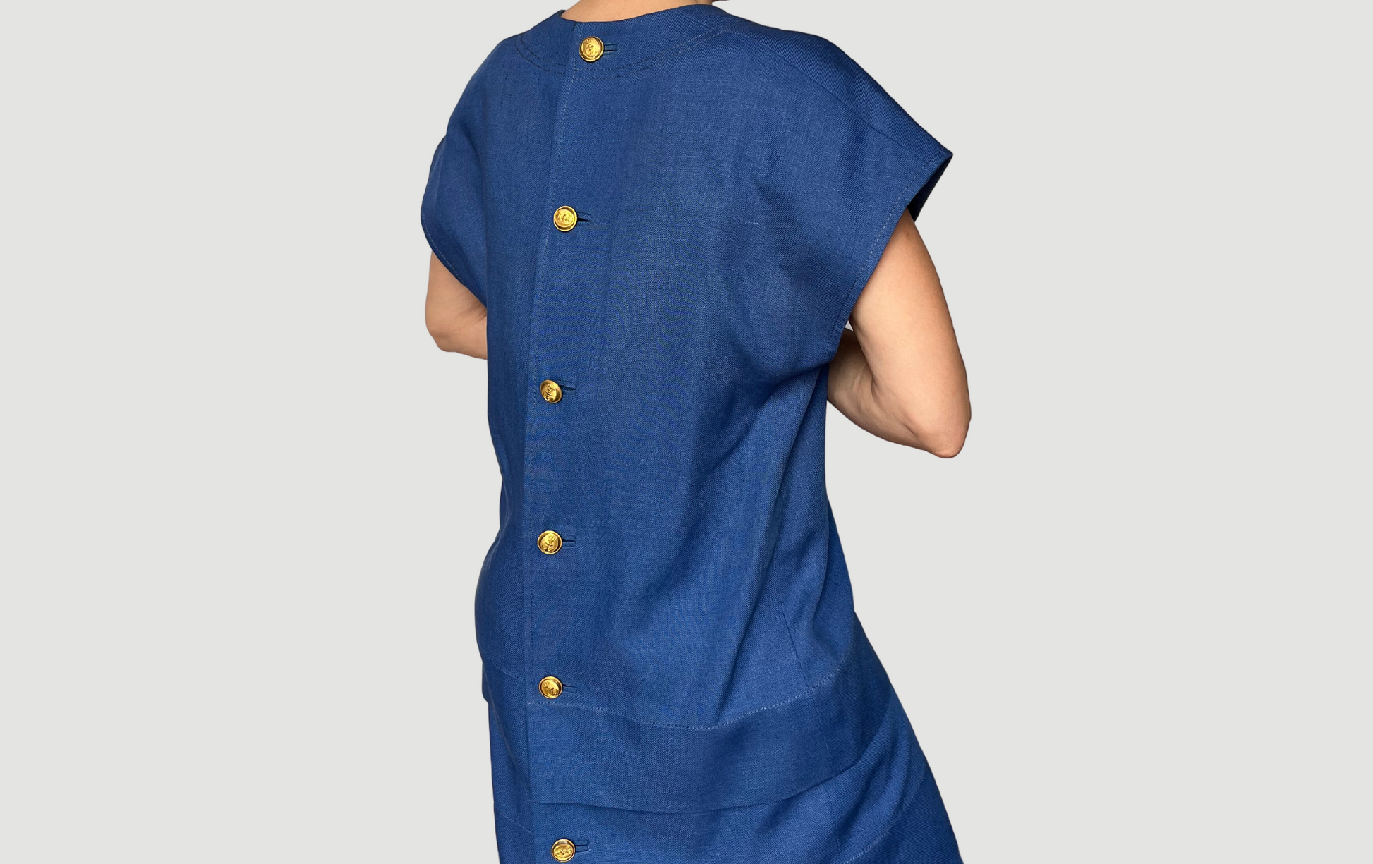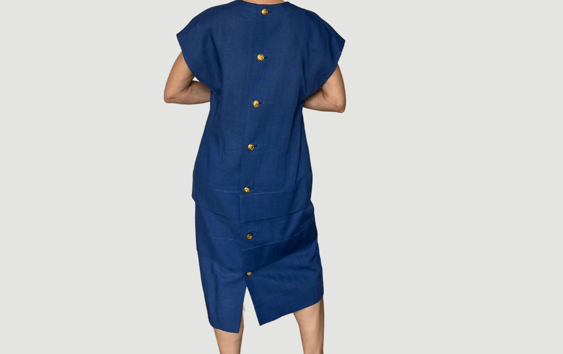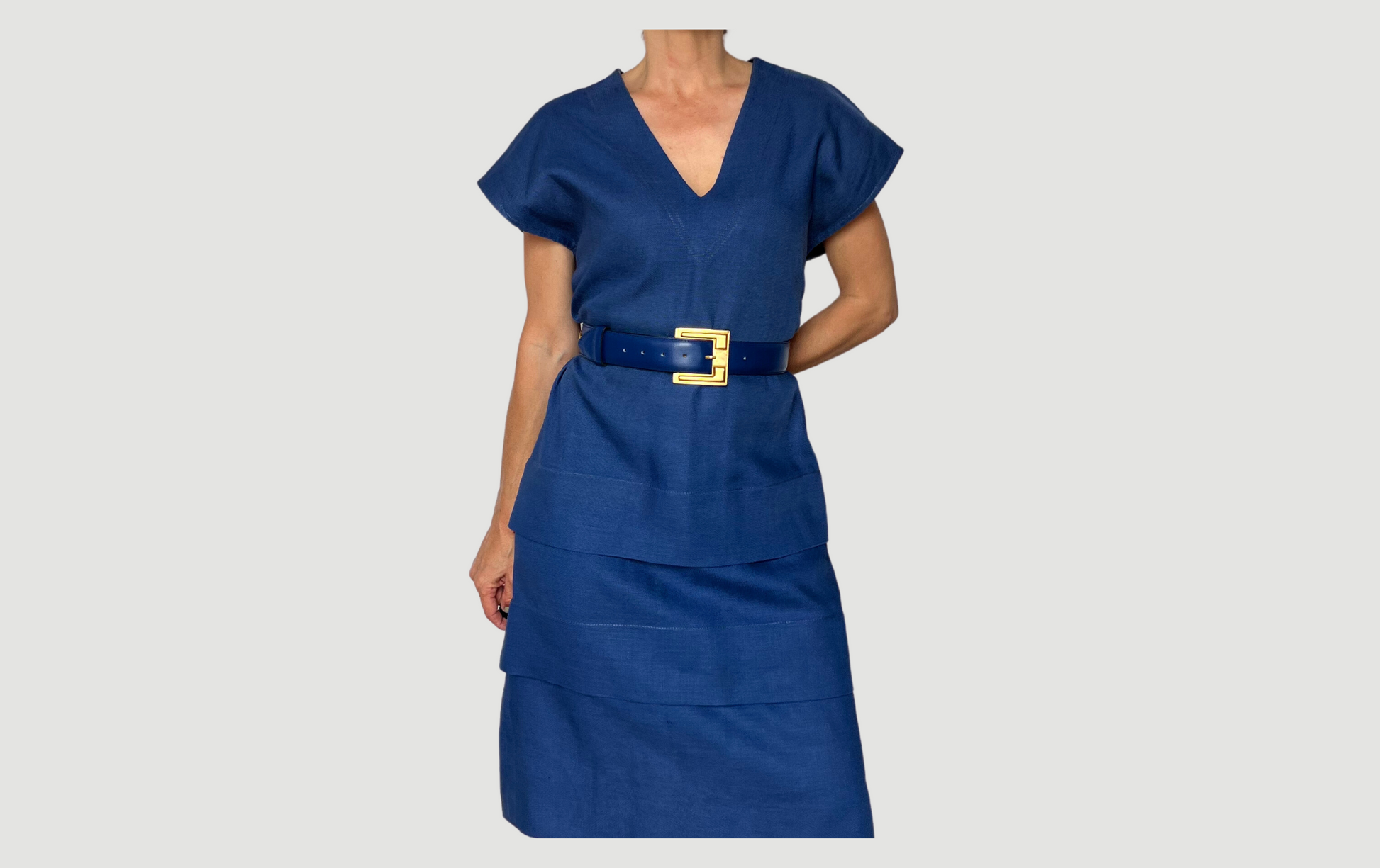 Beautiful Vintage Women Blue thick linen fabric Dress