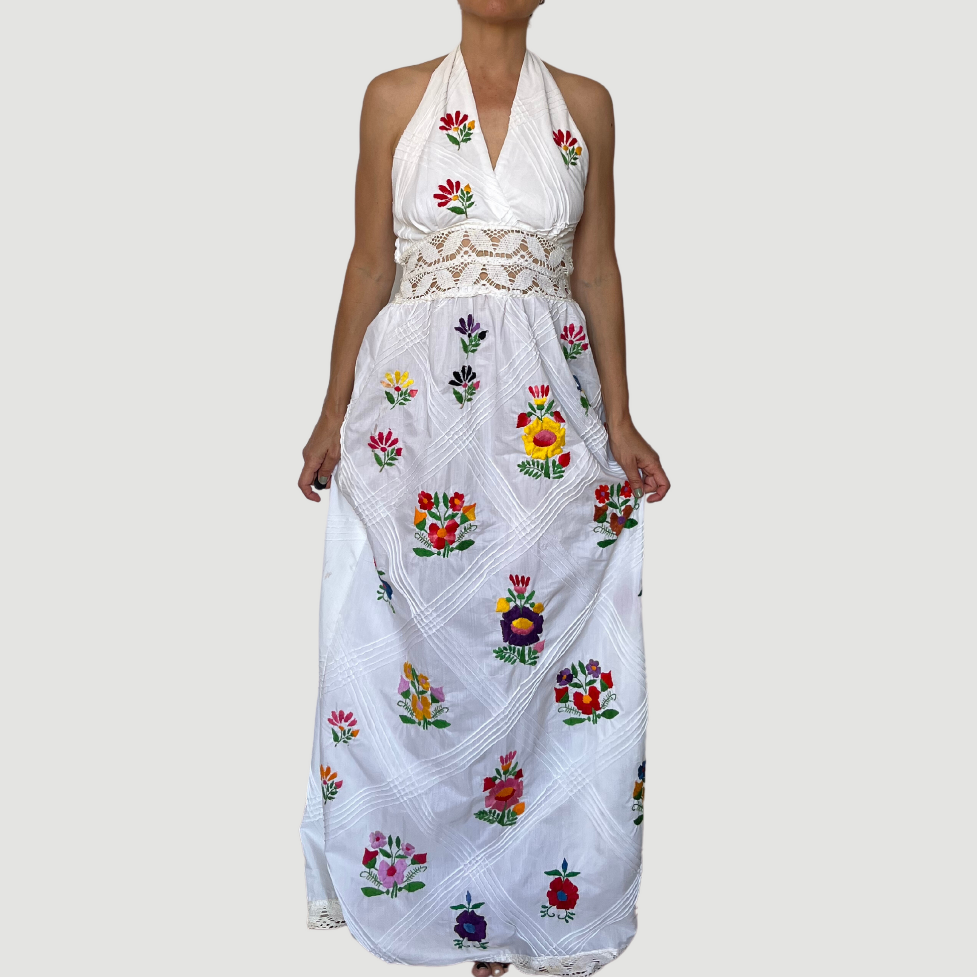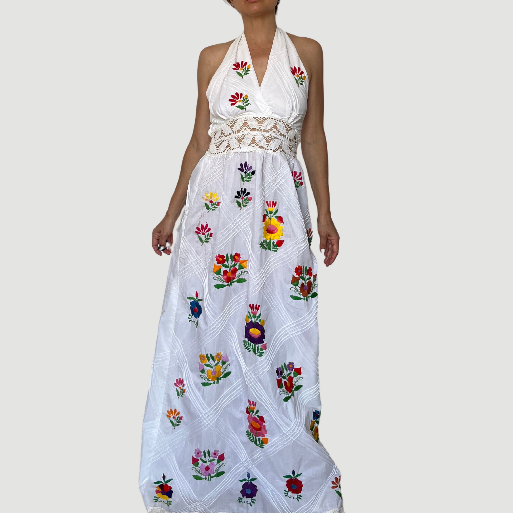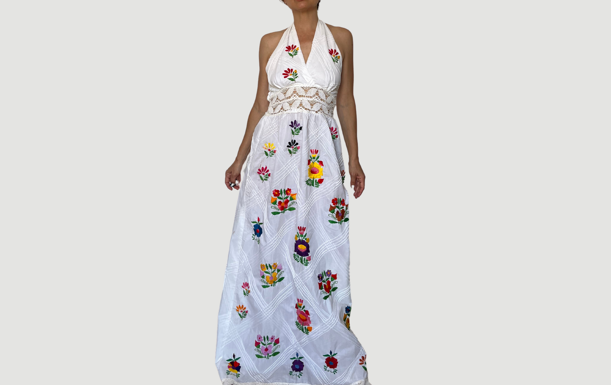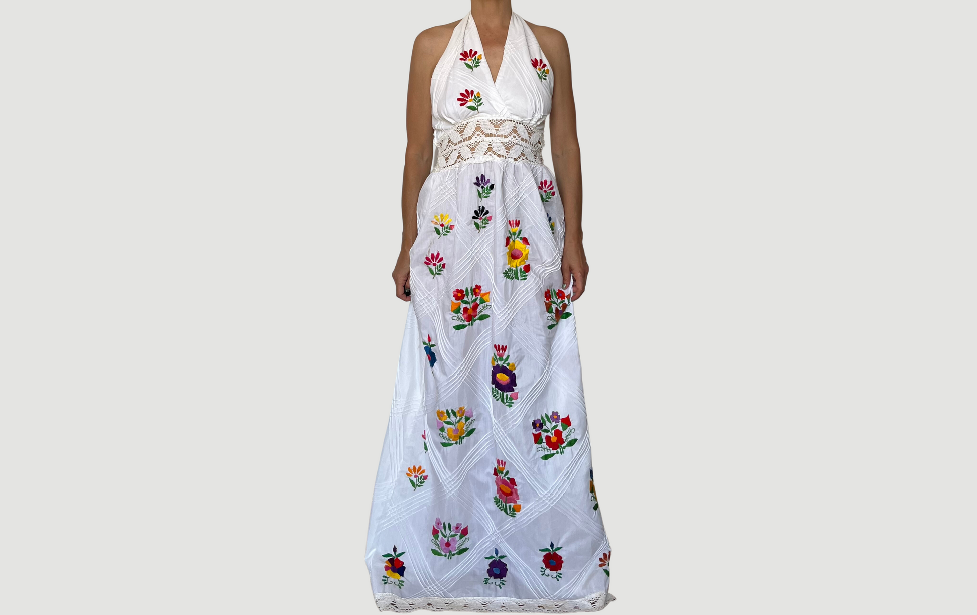 The waist and hem of the dress is enhanced with an exquisite embroidered detail,