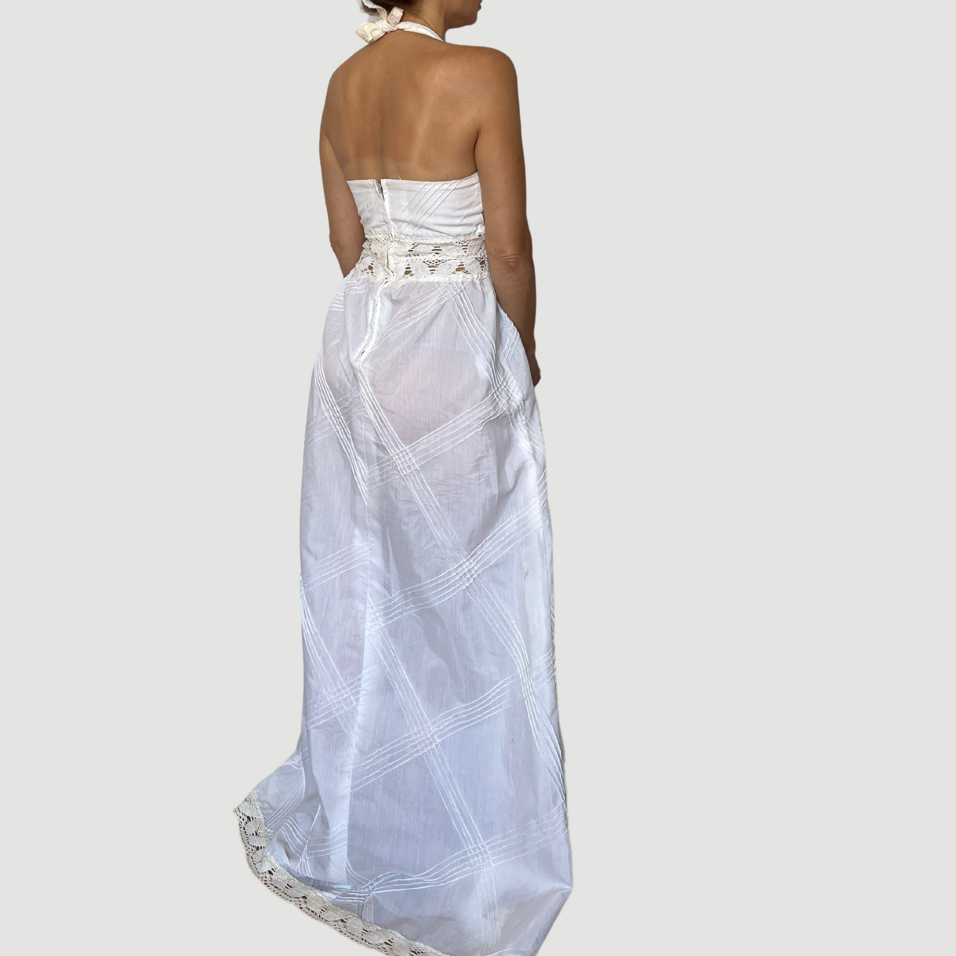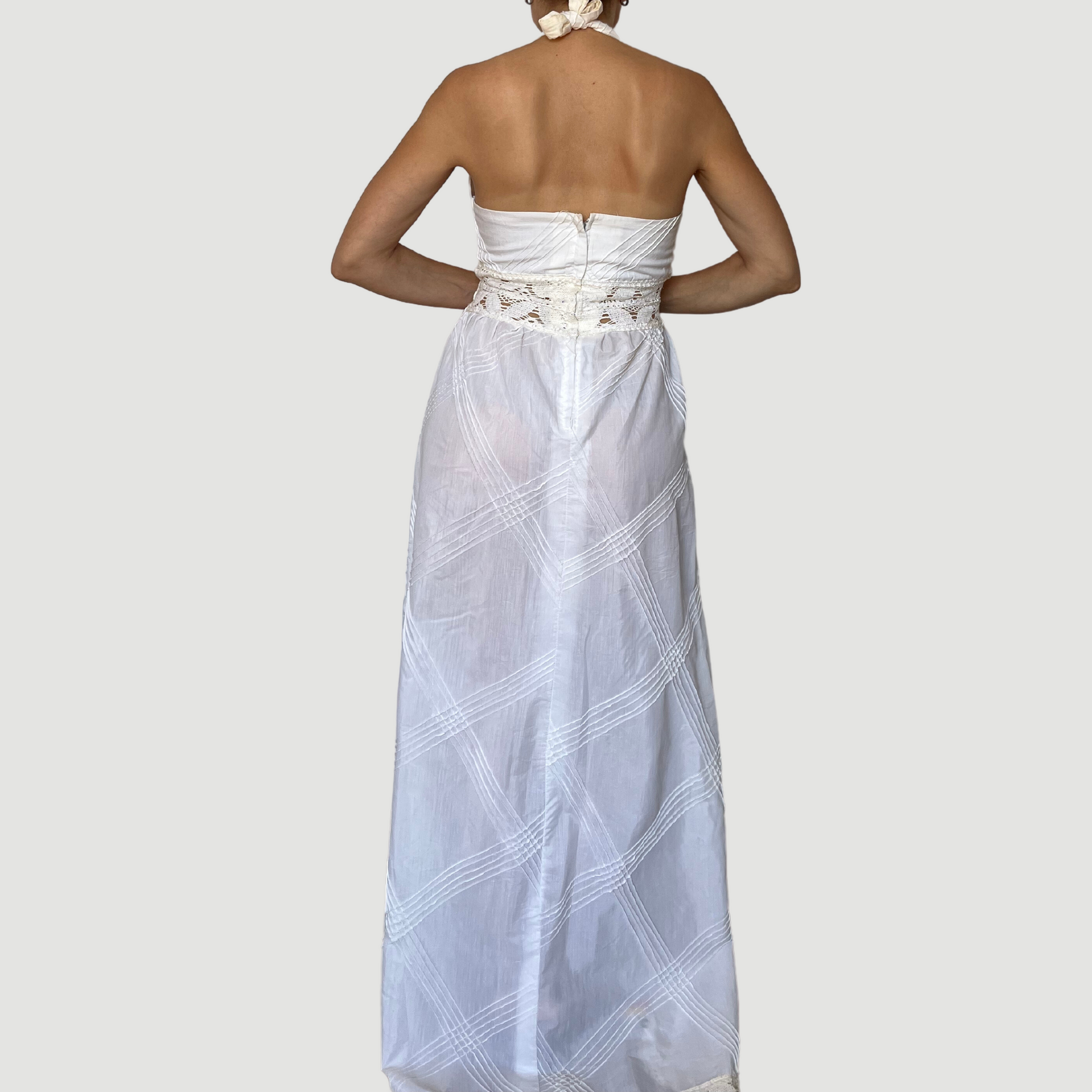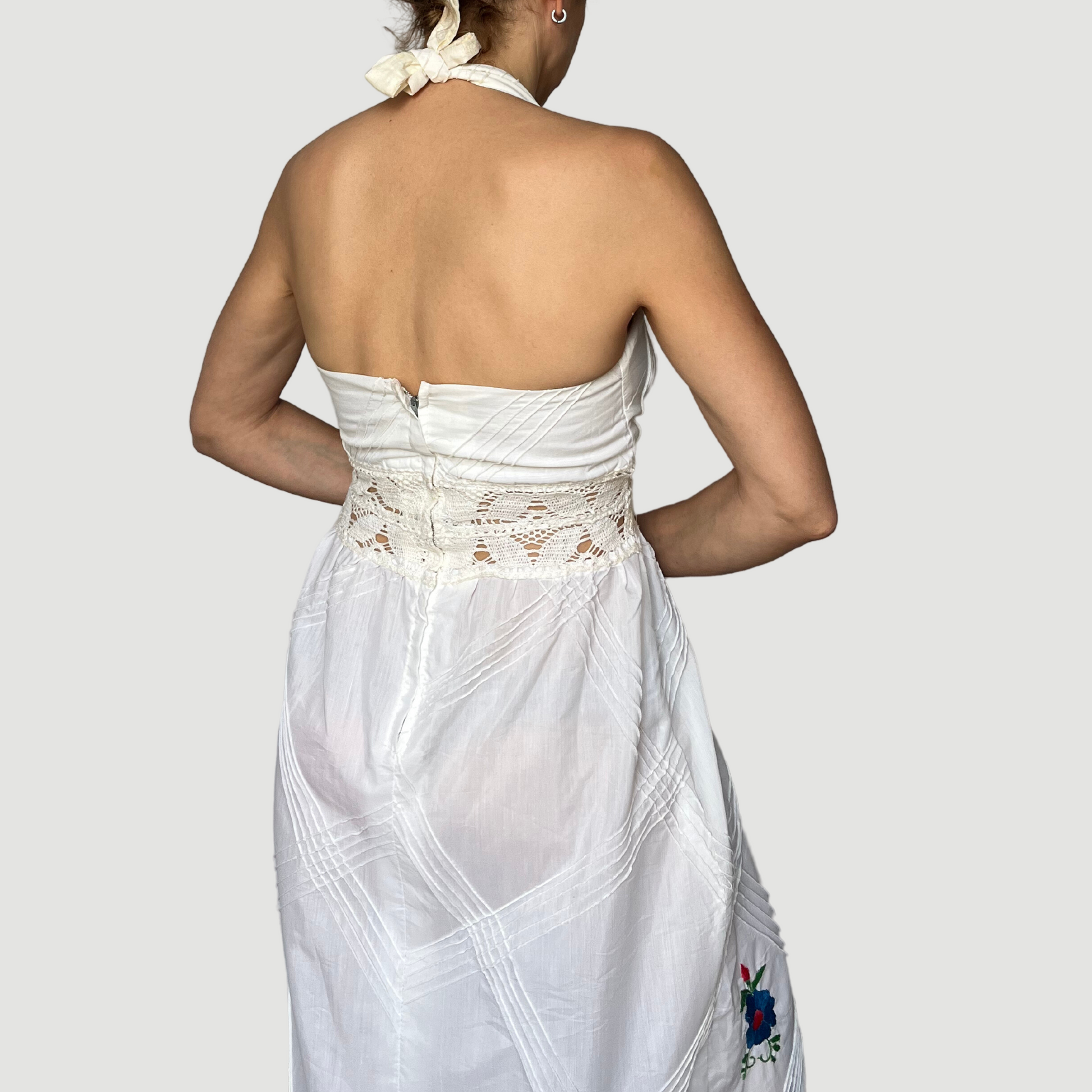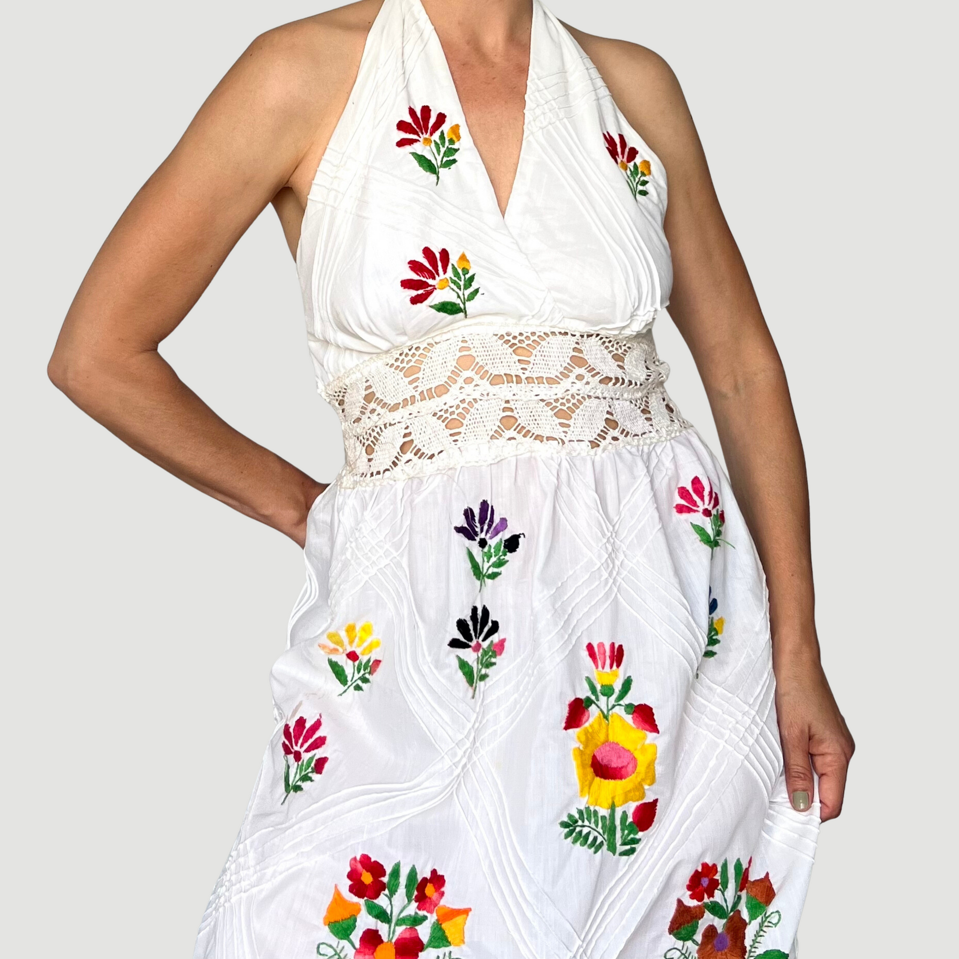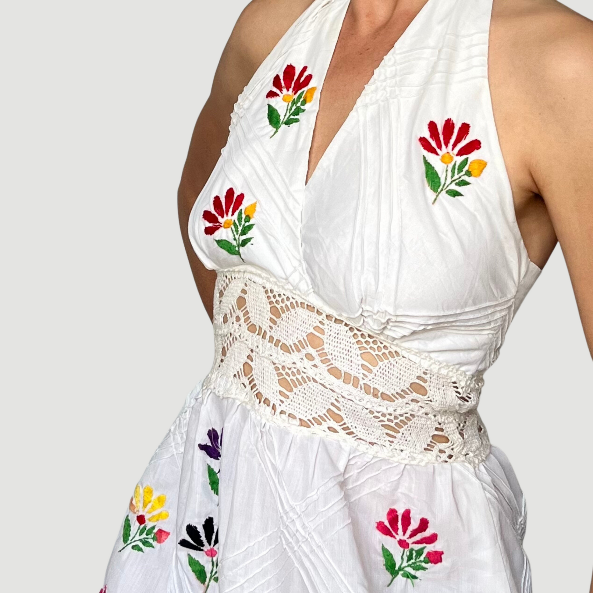 The waist and hem of the dress is enhanced with an exquisite embroidered detail,