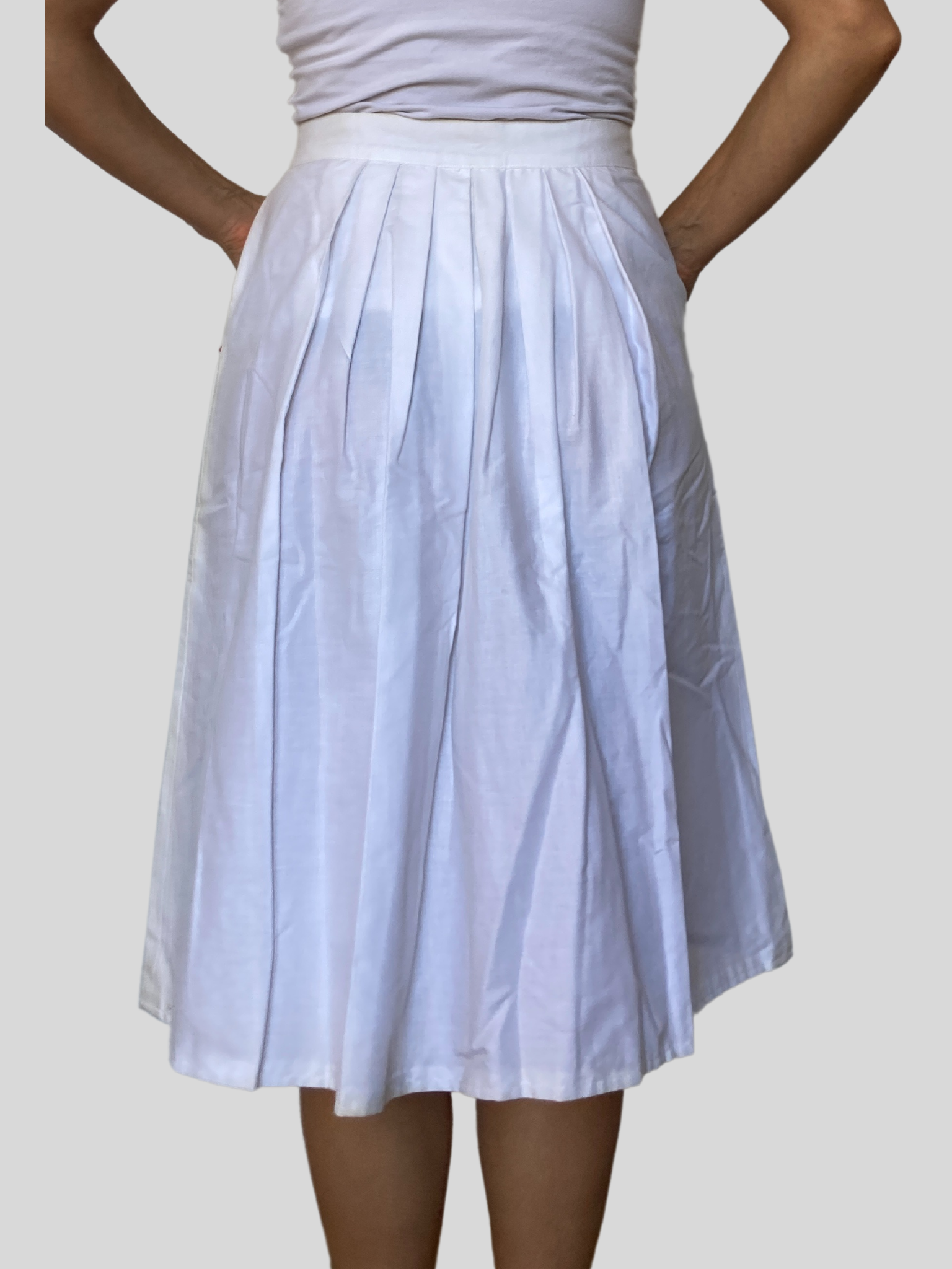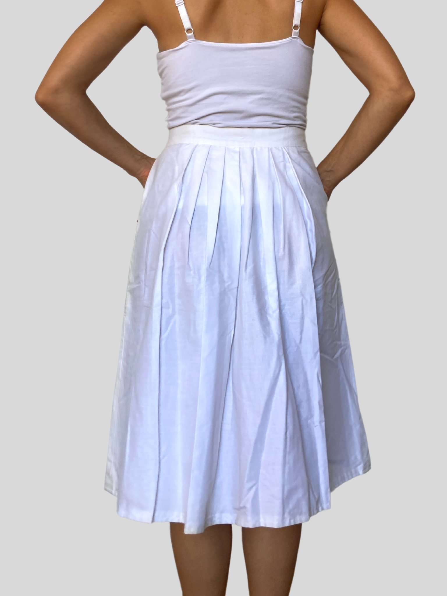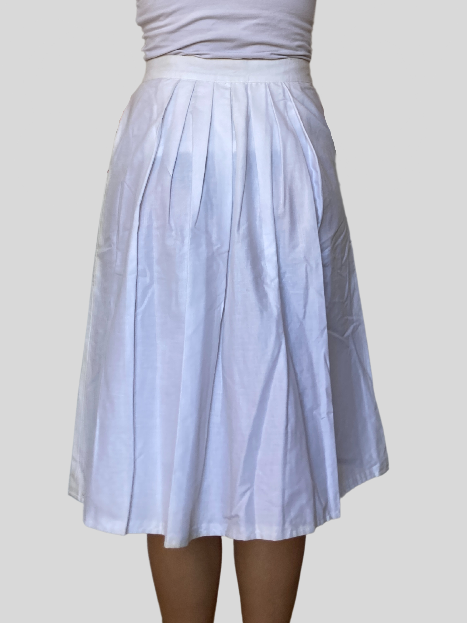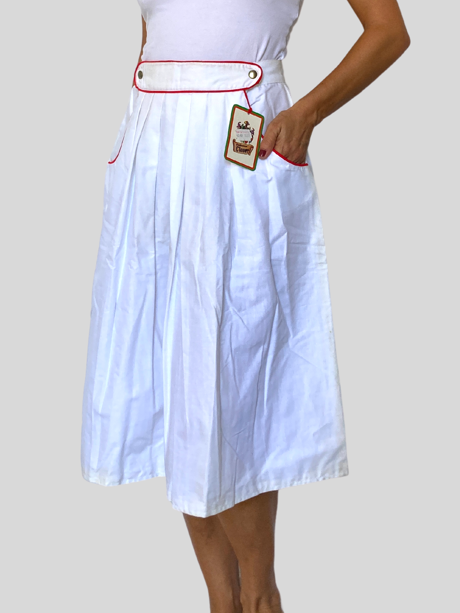 Made of cotton, this white midi skirt is enhanced with red piping.