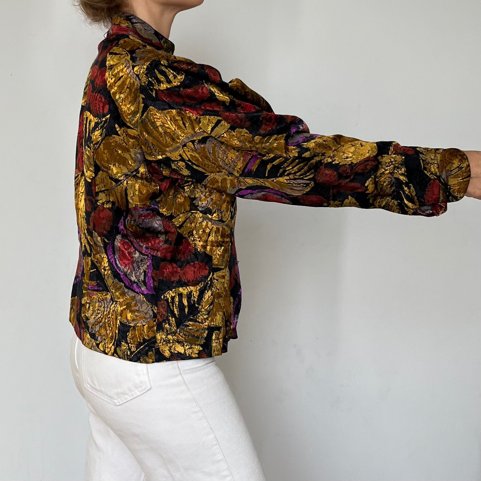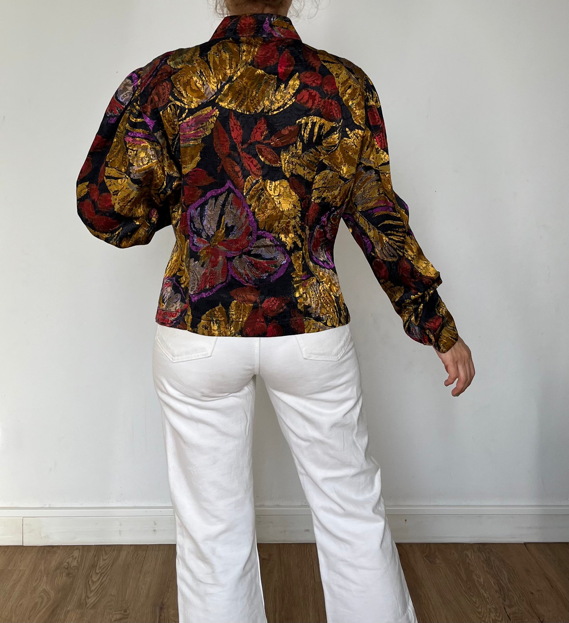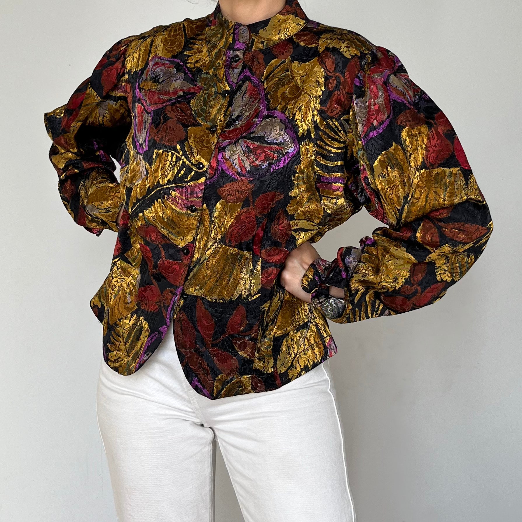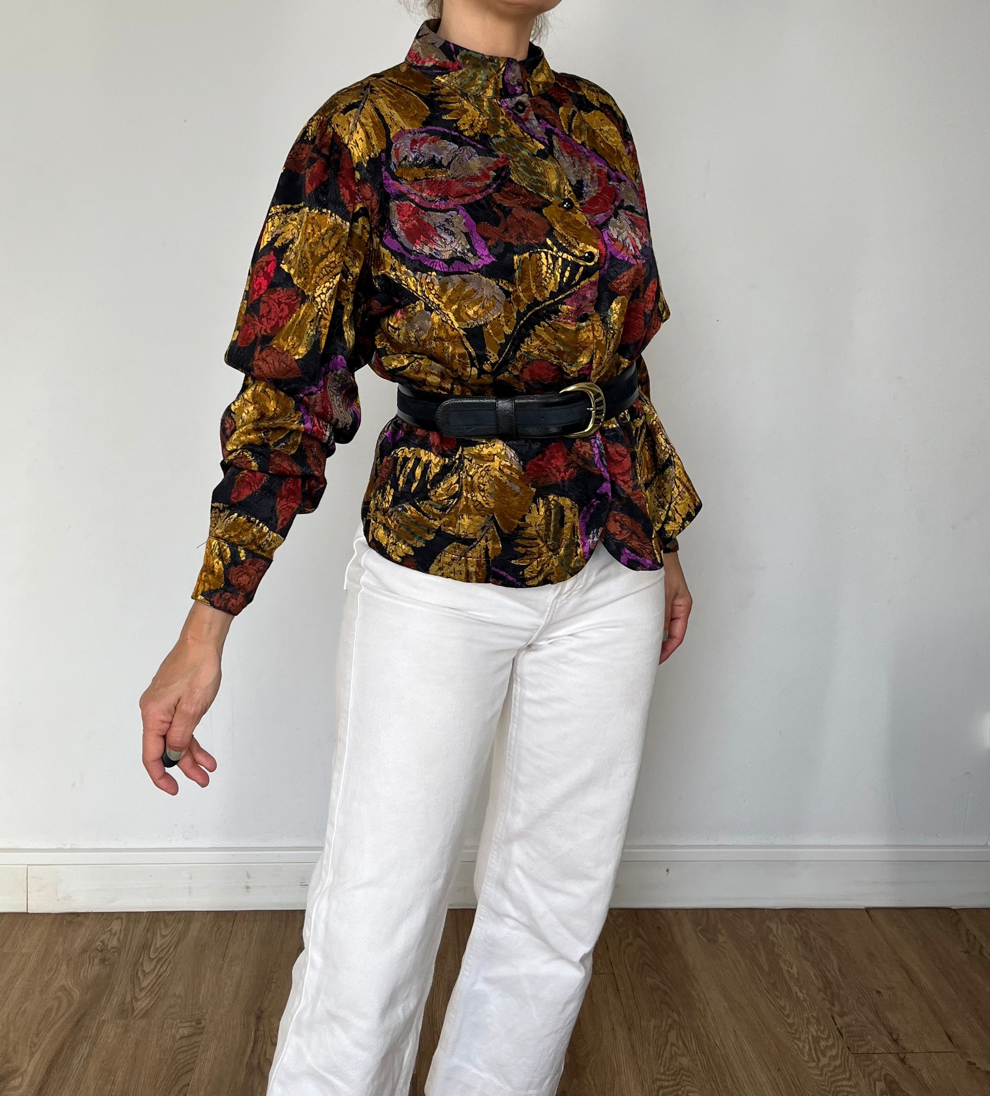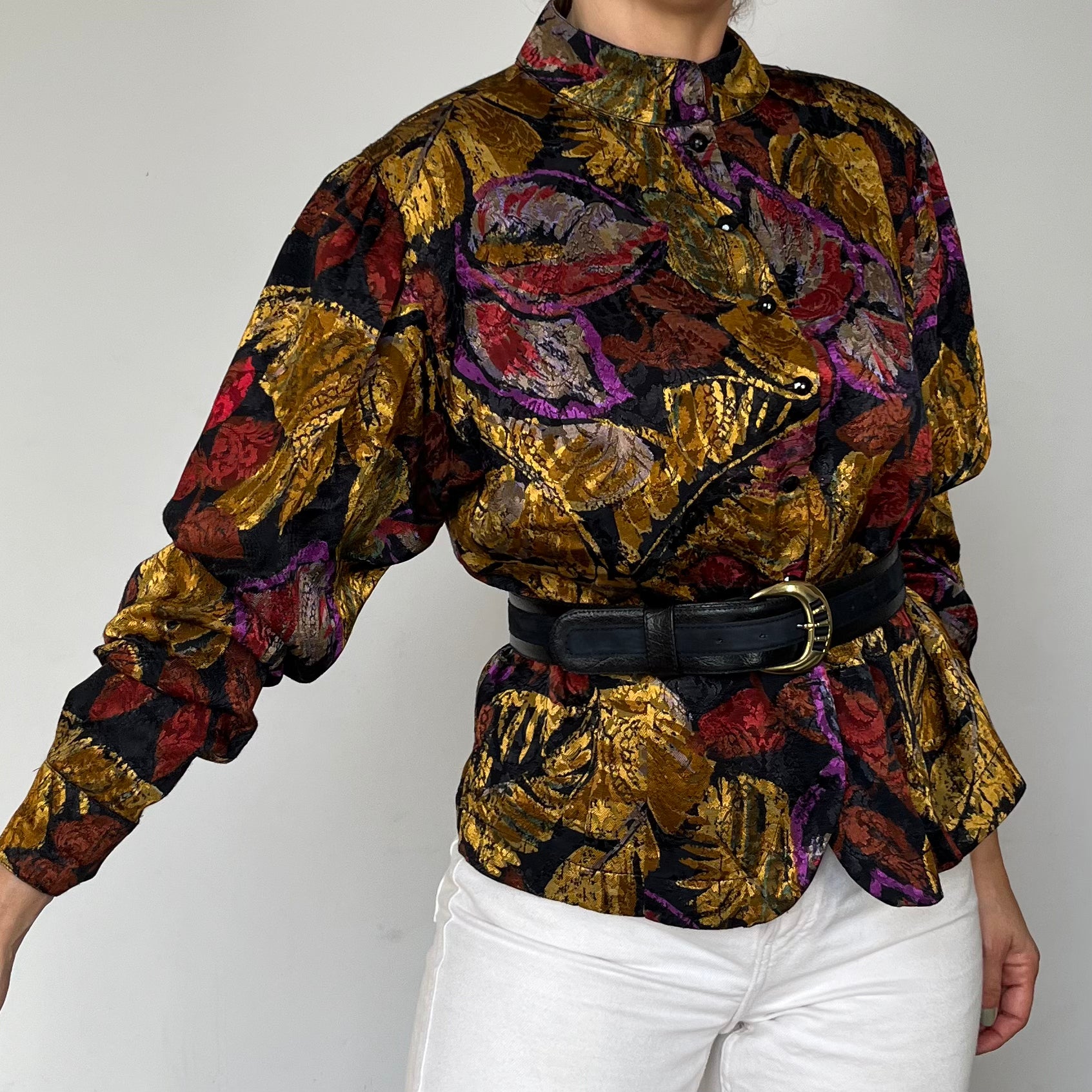 This beautiful blouse has long puffed sleeves with fitted cuffs.