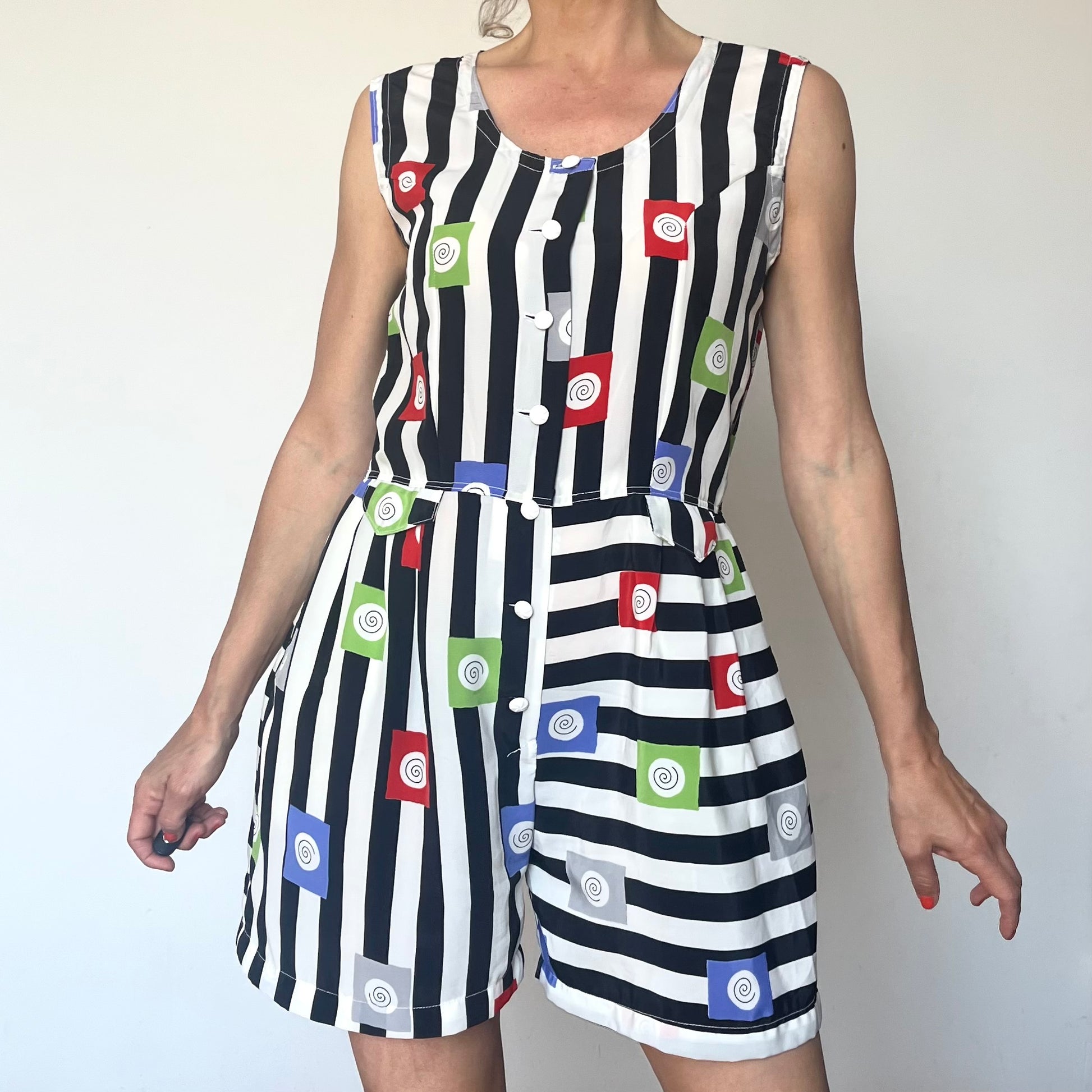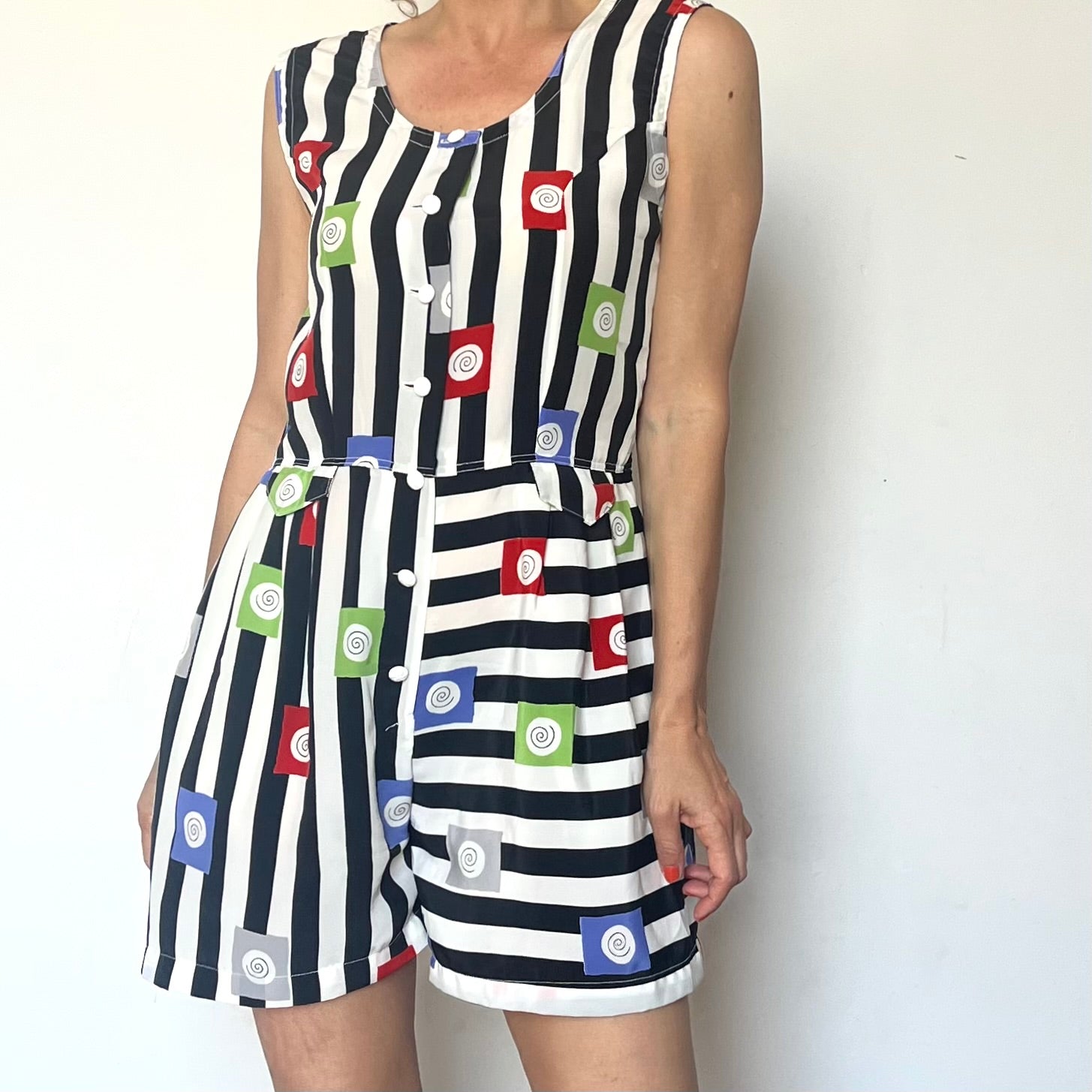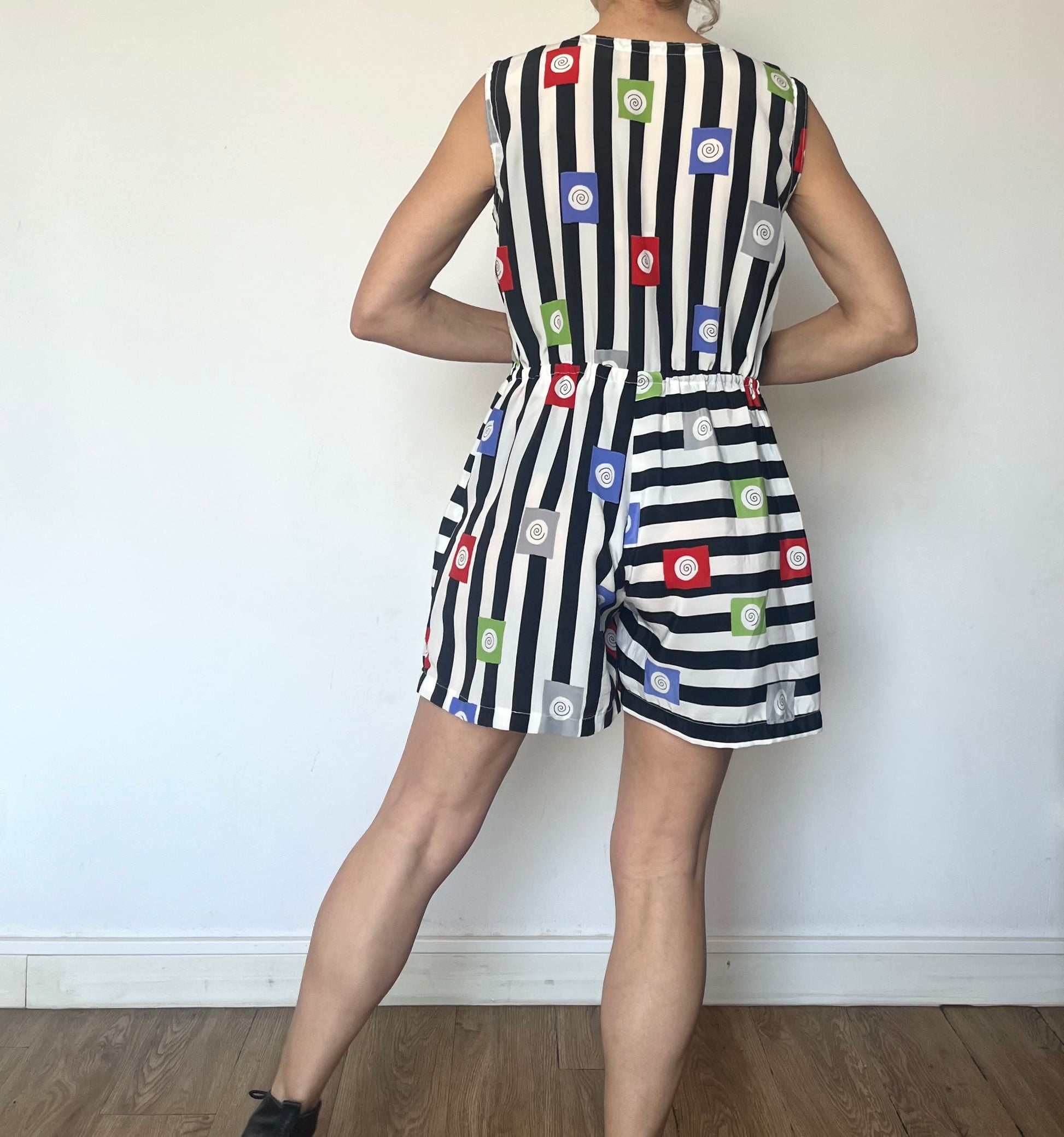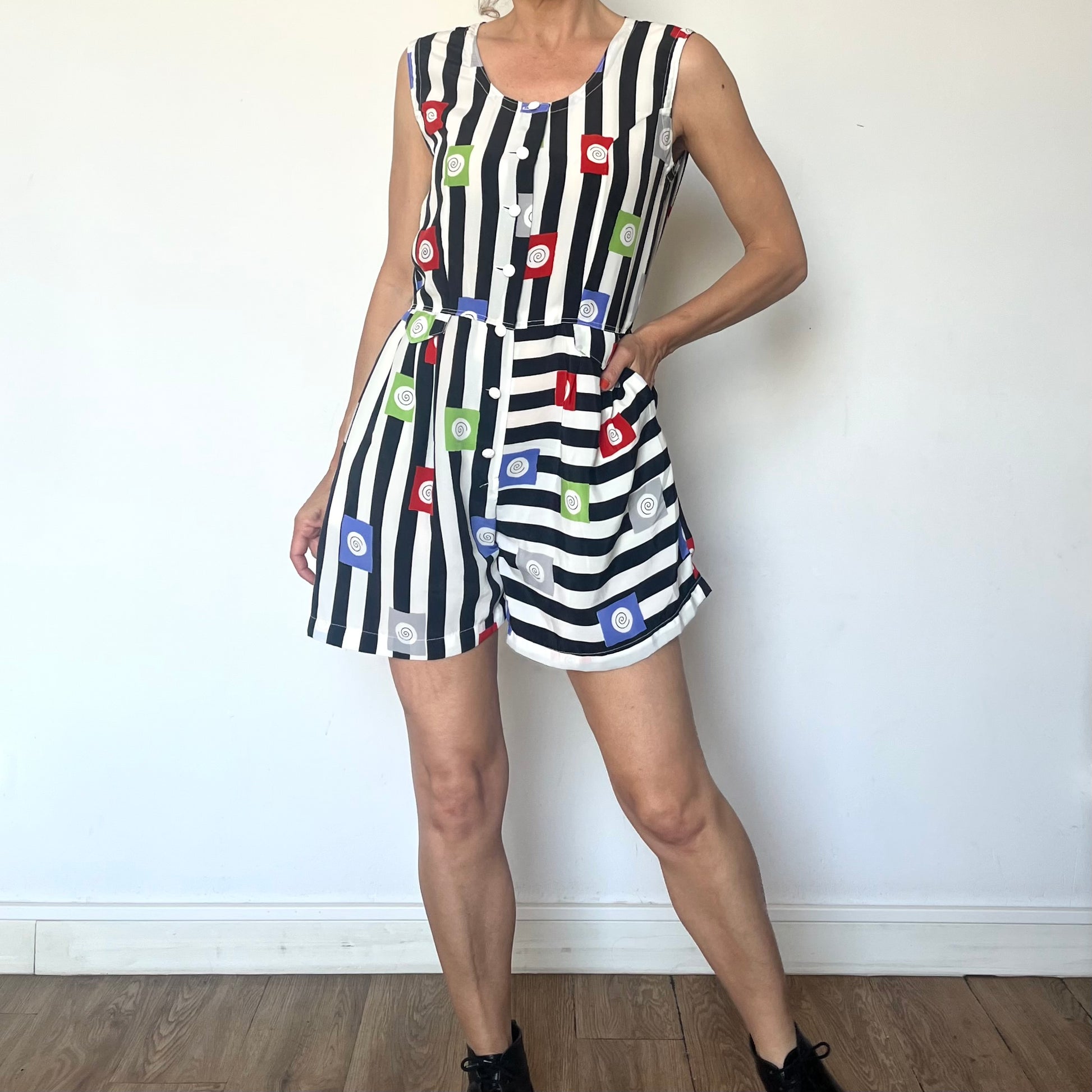 Vintage striped Romper with pockets
